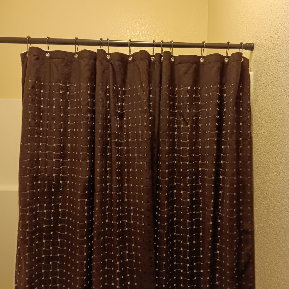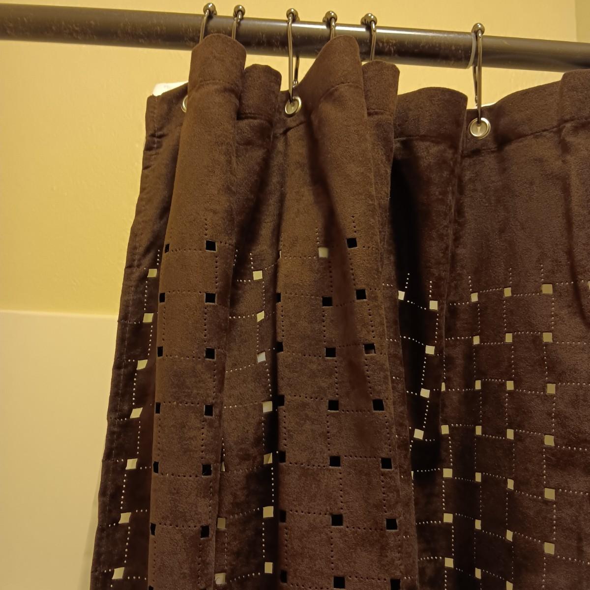 CHOCOLATE BROWN SHOWER CURTAIN, LINER & ROD, CABINET SLIDING DRAWER AND MORE