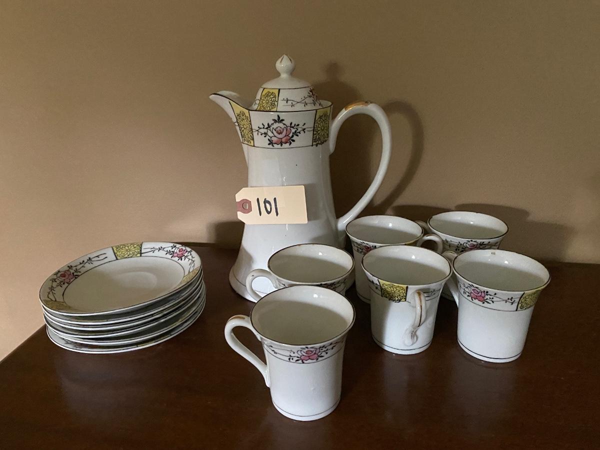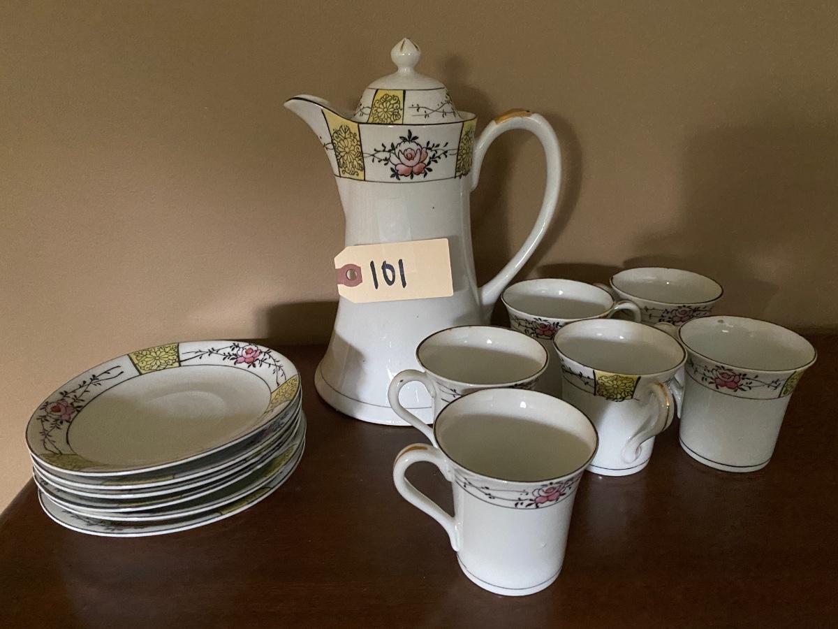 Vintage Chocolate Pot w/ Cups and Saucers As Pictured