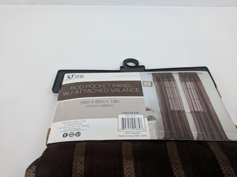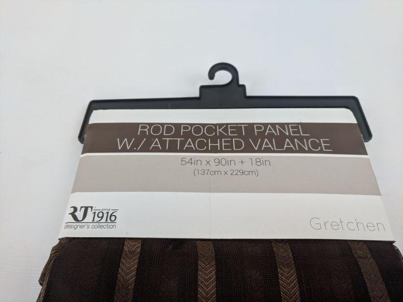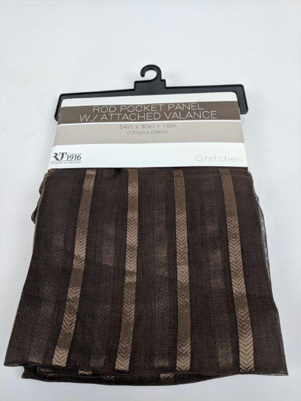 Chocolate Rod Pocket Panel w/Attached Valance, 54in x 90in x 18in - New