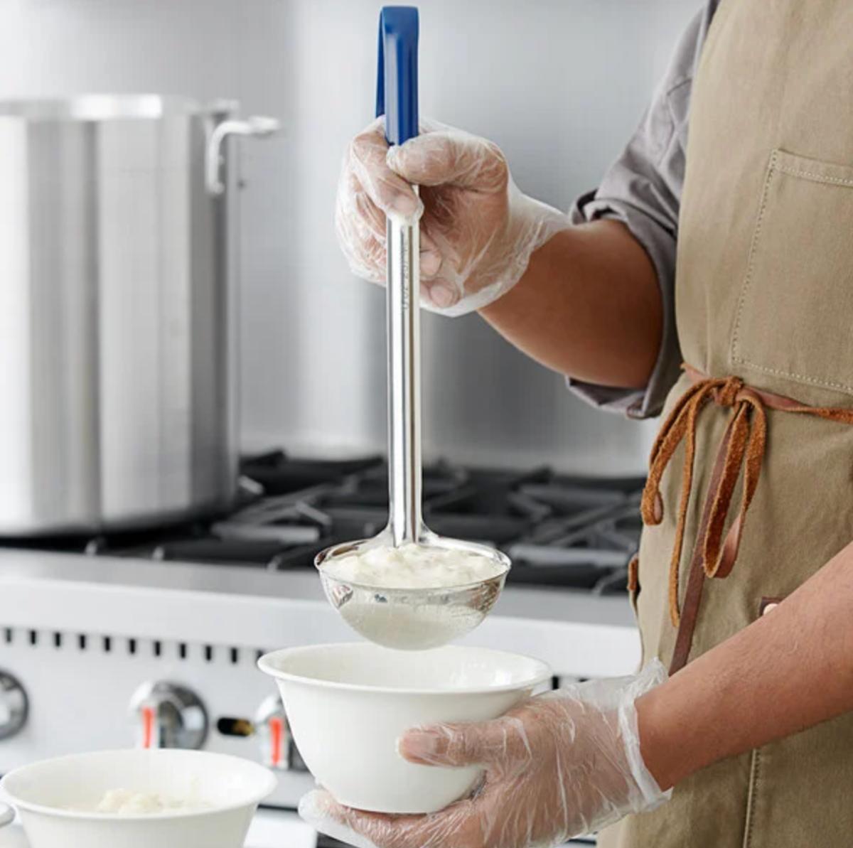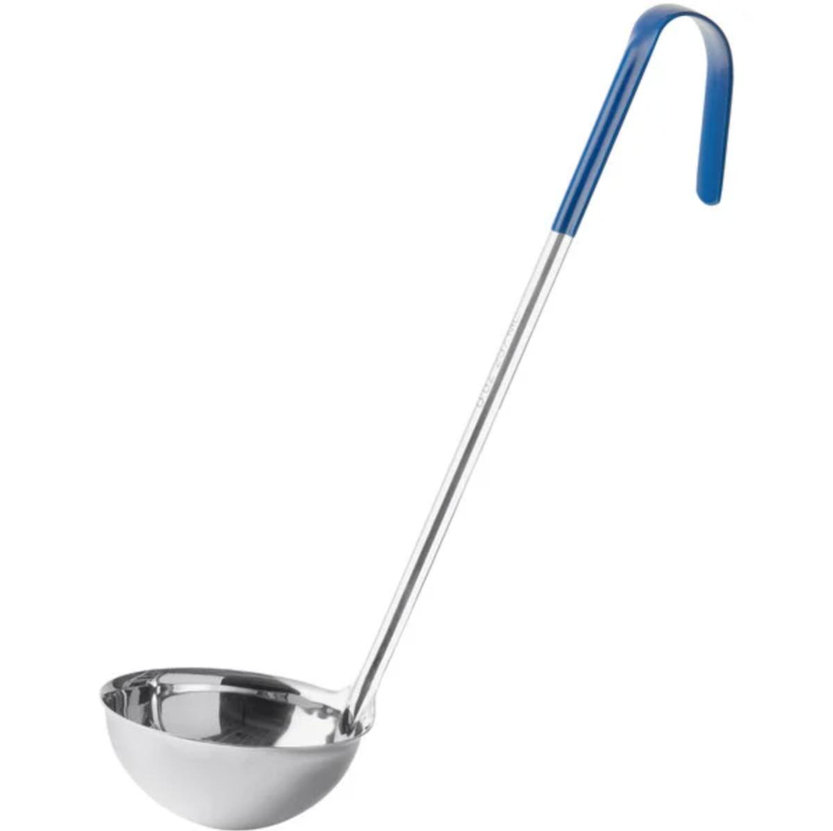 Choice 8 oz. One-Piece Stainless Steel Ladle with Blue Coated Handle