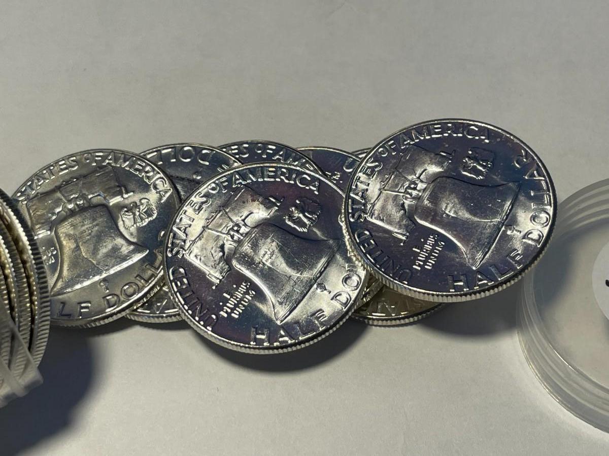 CHOICE BU ROLL OF (20) 1958 BRILLIANT UNCIRCULATED FRANKLIN SILVER HALF DOLLARS ORIGINAL! FREE DOMESTIC SHIPPING.