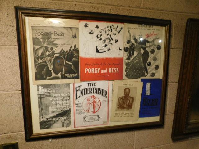 Choice One:  Framed Collage of Vintage Playbills and Music Sheets Featuring Black Americana Art and Entertainment
