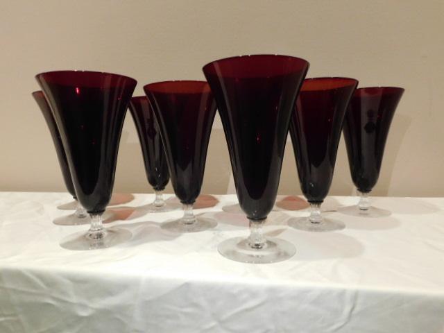 Choice One Vintage Red Drinking Glasses Short Stem 9pc 7"