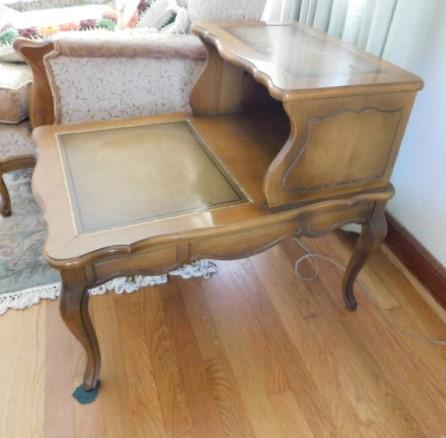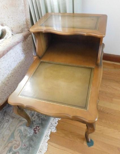 Choice One: Vintage Solid Wood Side Table with Inlay 16"x28" expect some wear or scratches