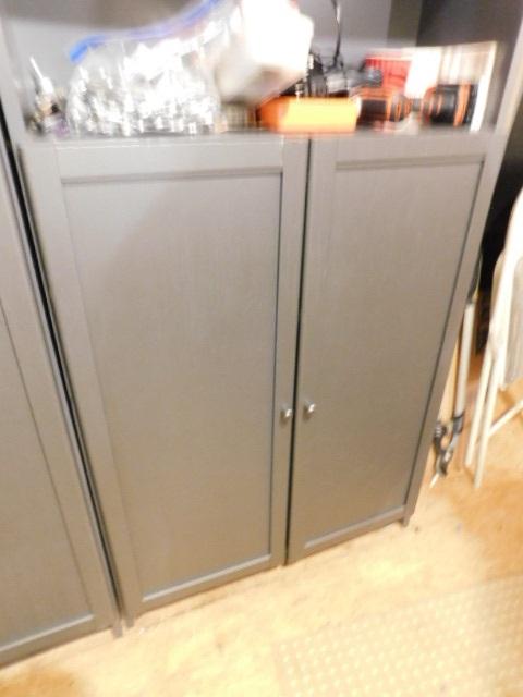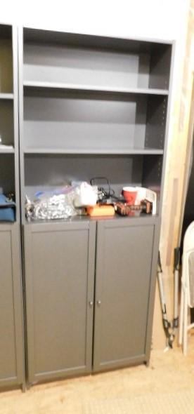Choice Two Book Shelf with Lower Double Door Storage Cabinet 32"x11"x80" (no contents) this is a downstairs item and will need two person removal. Please bring assistance and proper tools to remove.