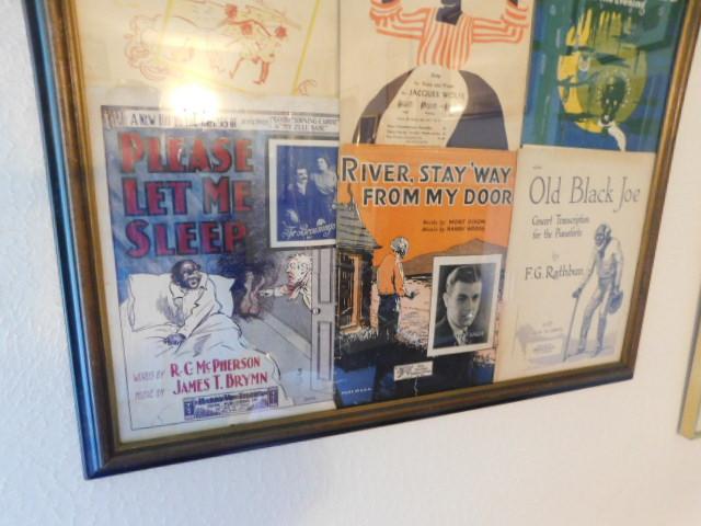 Choice Two:  Framed Collage of Vintage Playbills and Music Sheets Featuring Black Americana Art and Entertainment