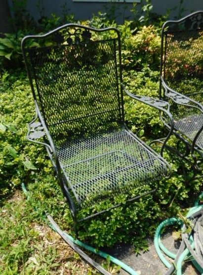 Choice Two Set of Two Wrought Iron High Back Coil Spring Chairs may need to be cleaned
