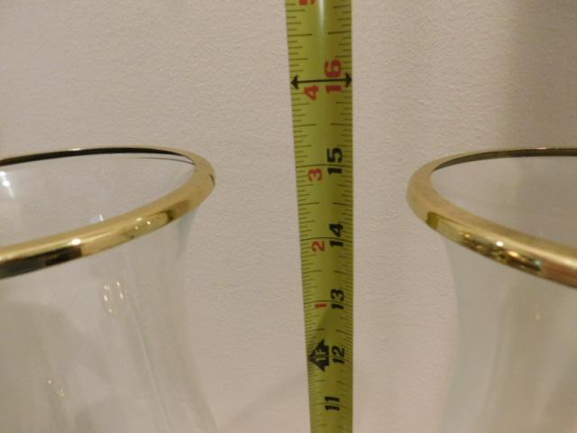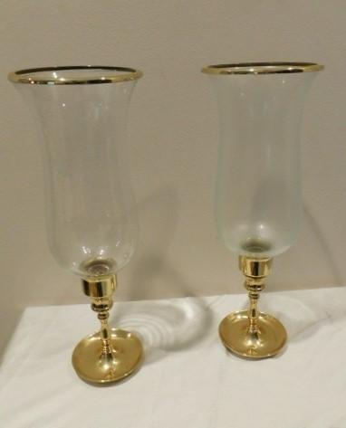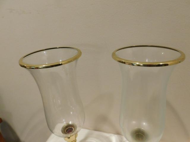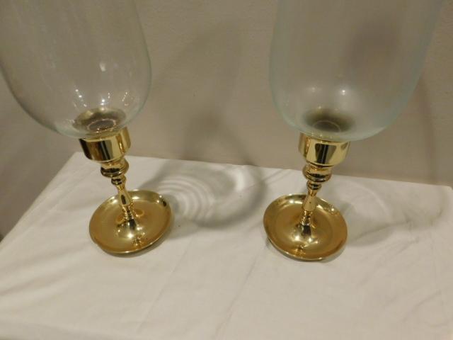 Choice Two Solid Brass Candle Holders with Glass Bell Shades 15"