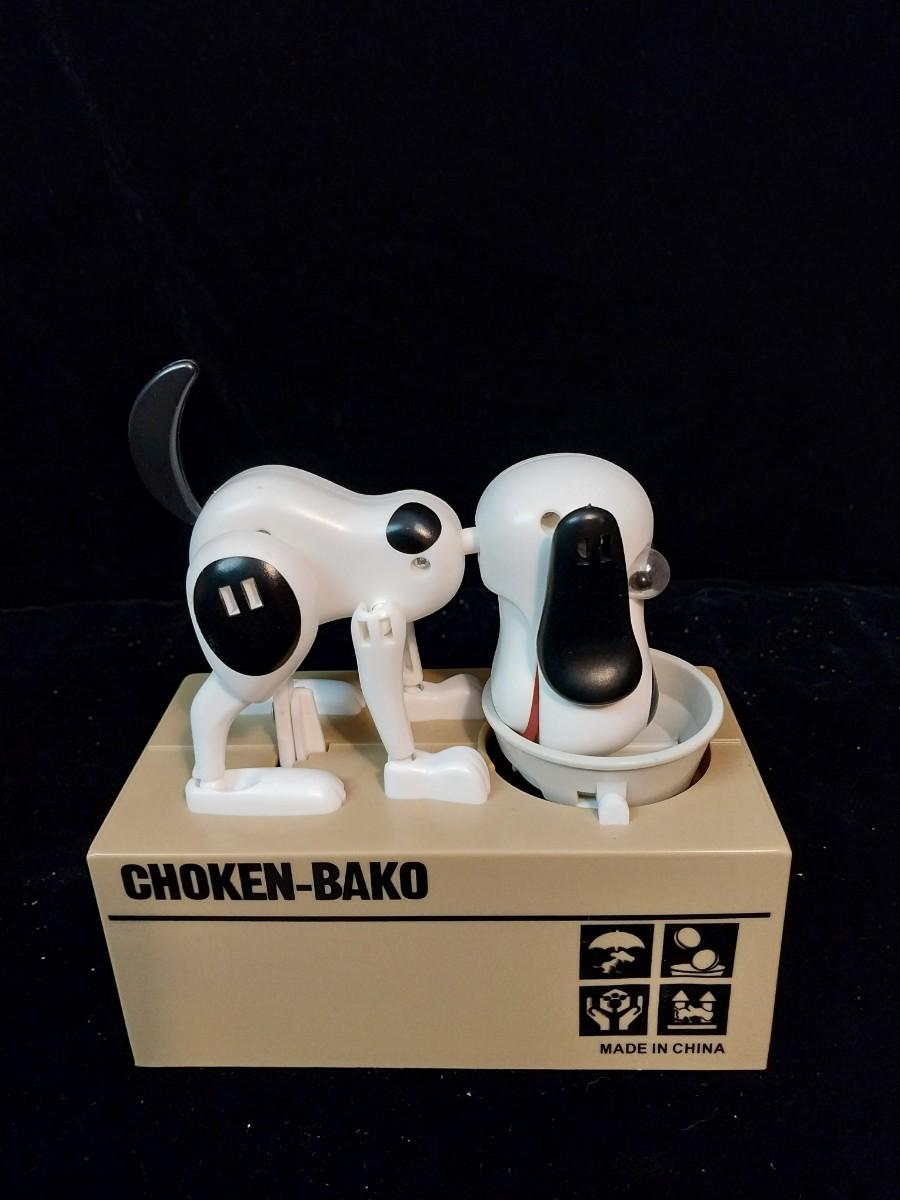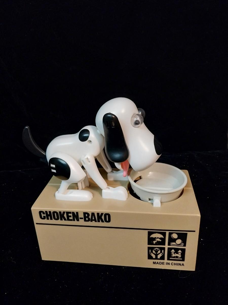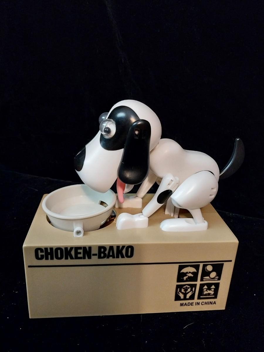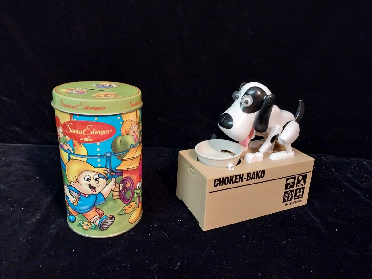 CHOKEN-BAKO DOG COIN BANK AND A TIN BANK