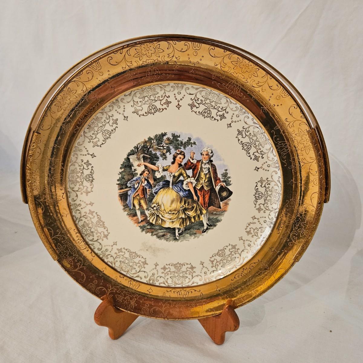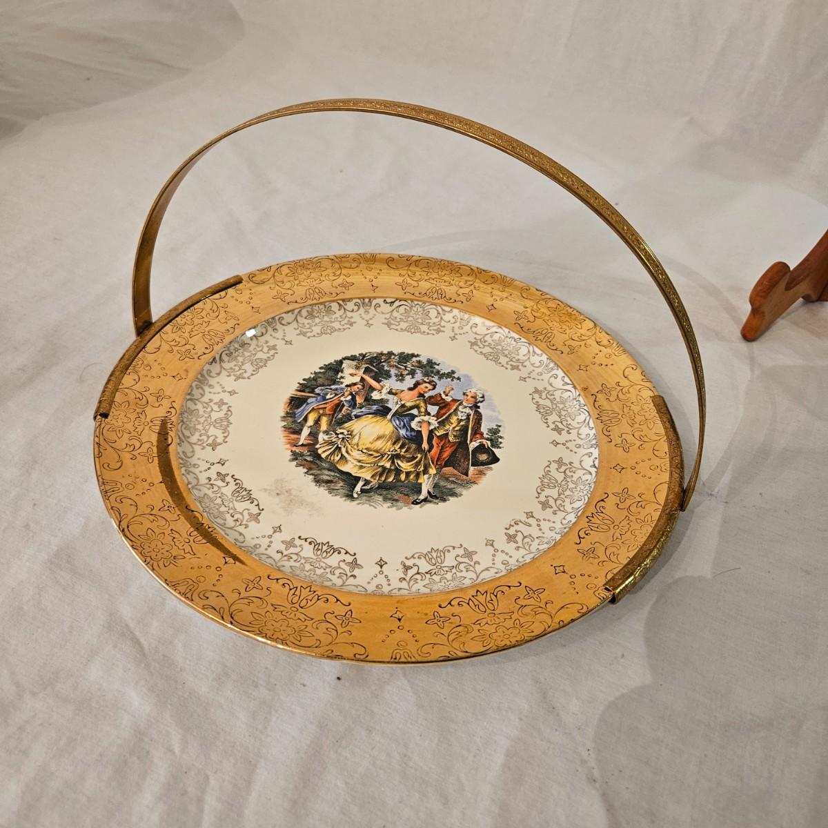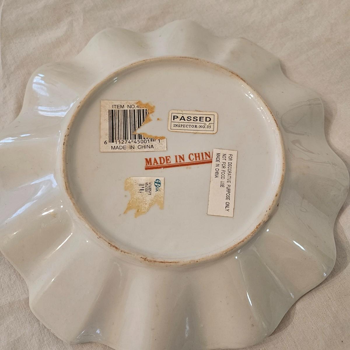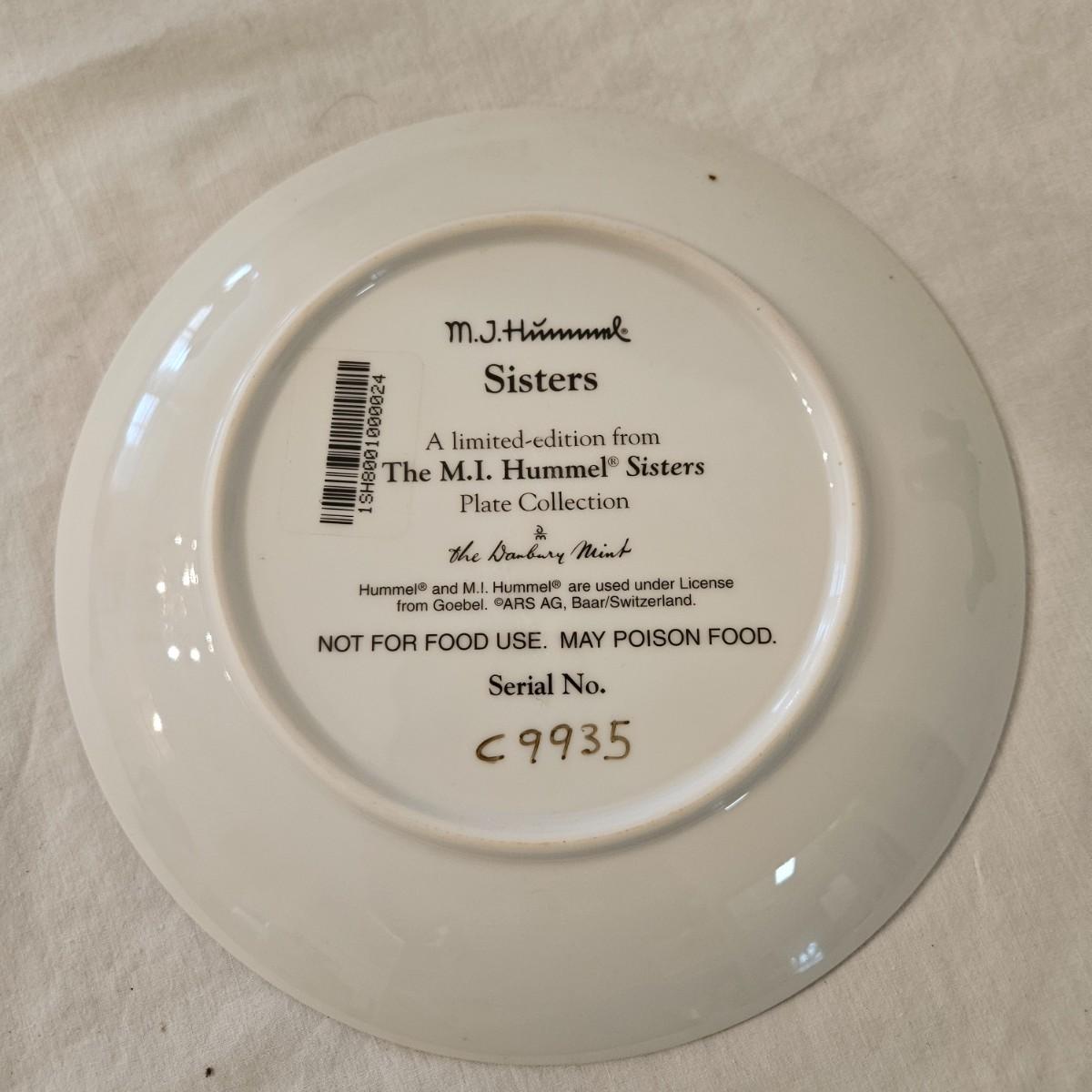 An assortment of decorative plates, easels and ceramic fruit. The plates include manufacturers such as Hummel, Chokin and Sabin. All four plates includes an easel. Also included is a ceramic fruit bowl that measures approximately 11"D x 9.5"H. Shipping available