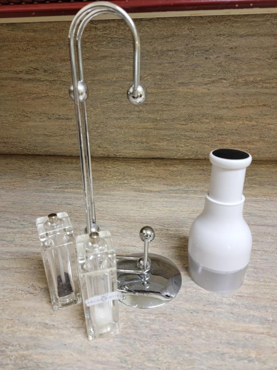 chopper, salt and pepper shakers, paper towel holder