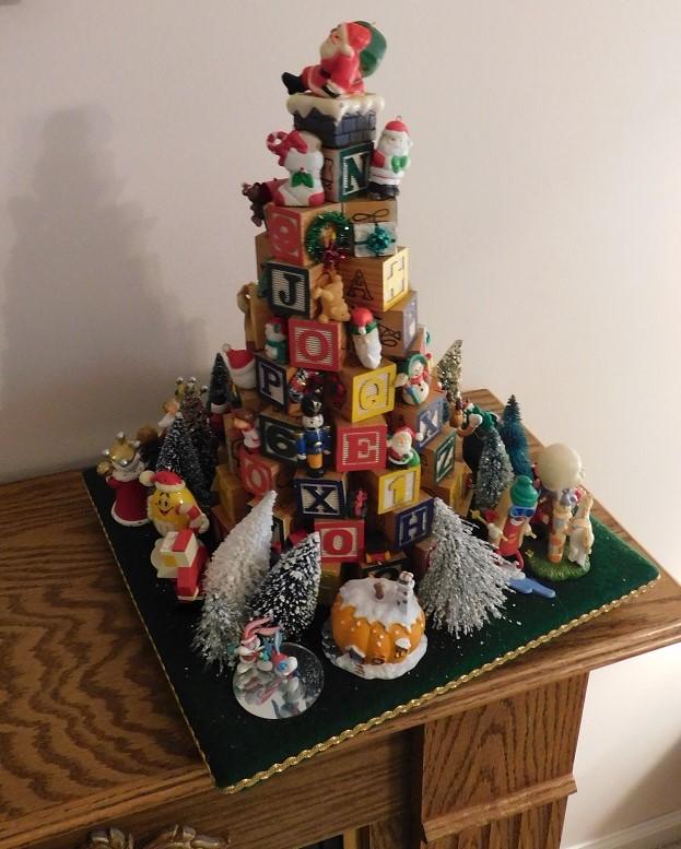 Chrismas Tree Building Block Tower nice condition. Very unique one of a kind