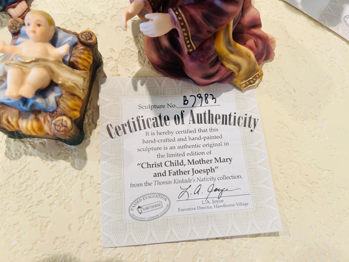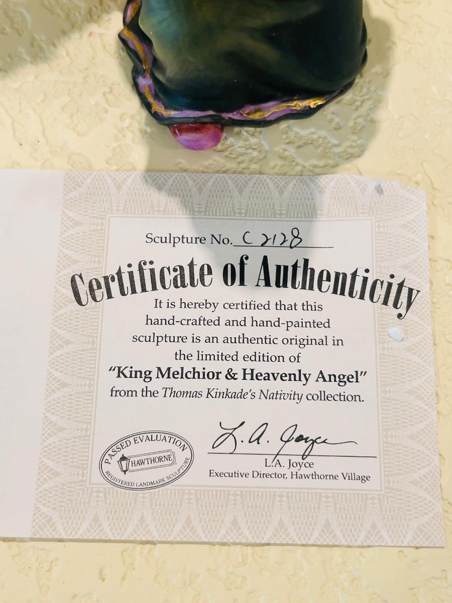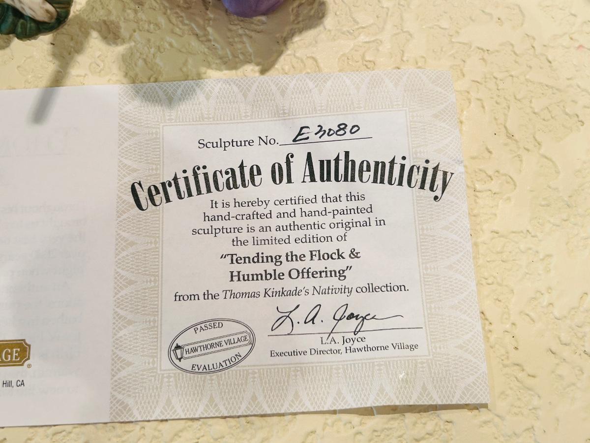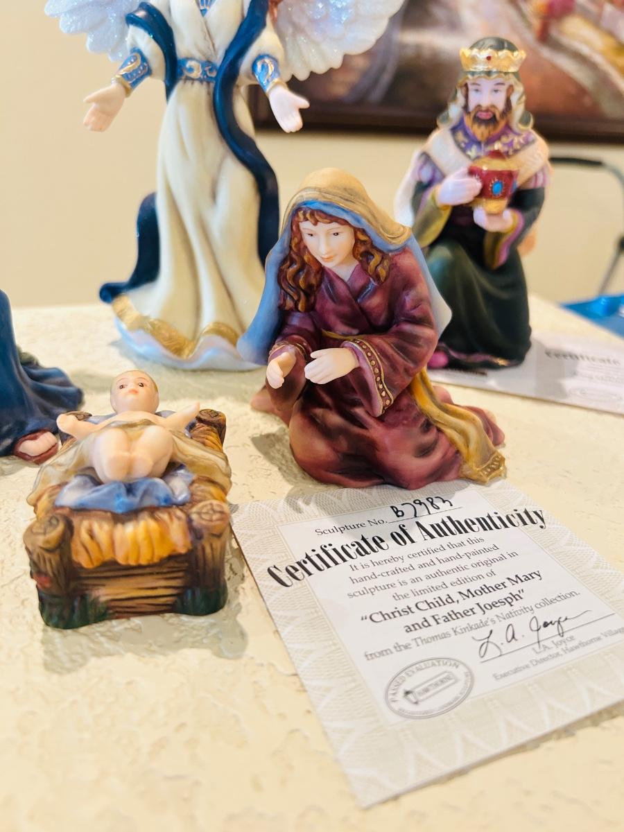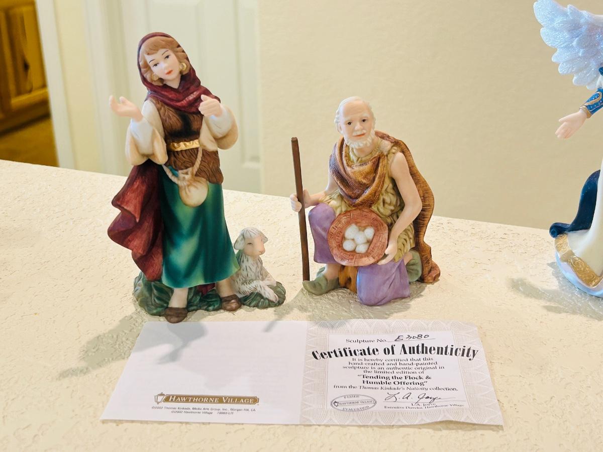 “CHRIST CHILD, MOTHER MARY AND FATHER JOSEPH”, KING MELCHIOR AND HEAVENLY ANGEL TENDING THE FLOCK AND HUMBLE OFFERING FROM THE THOMAS KINKAID COLLECTION AT THE BRADFORD EXCHANGE