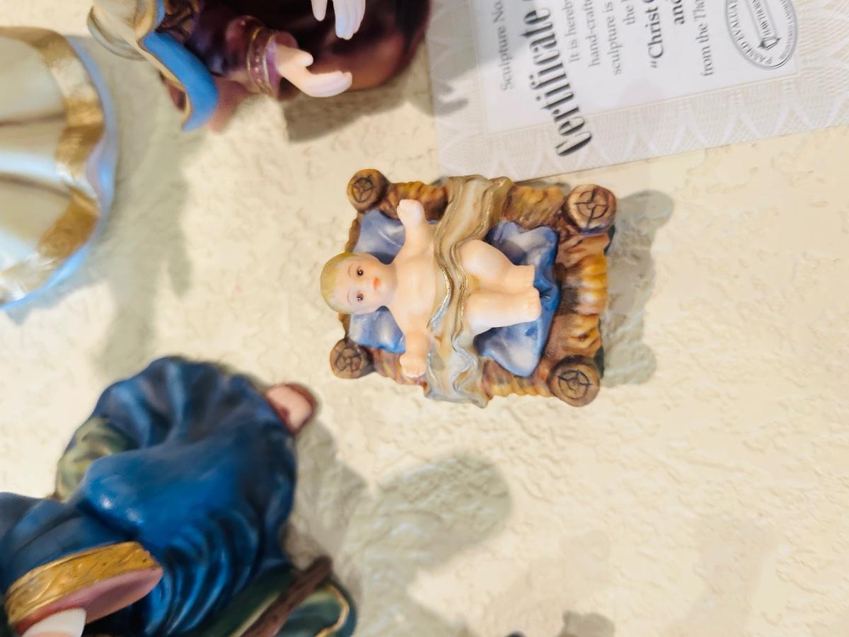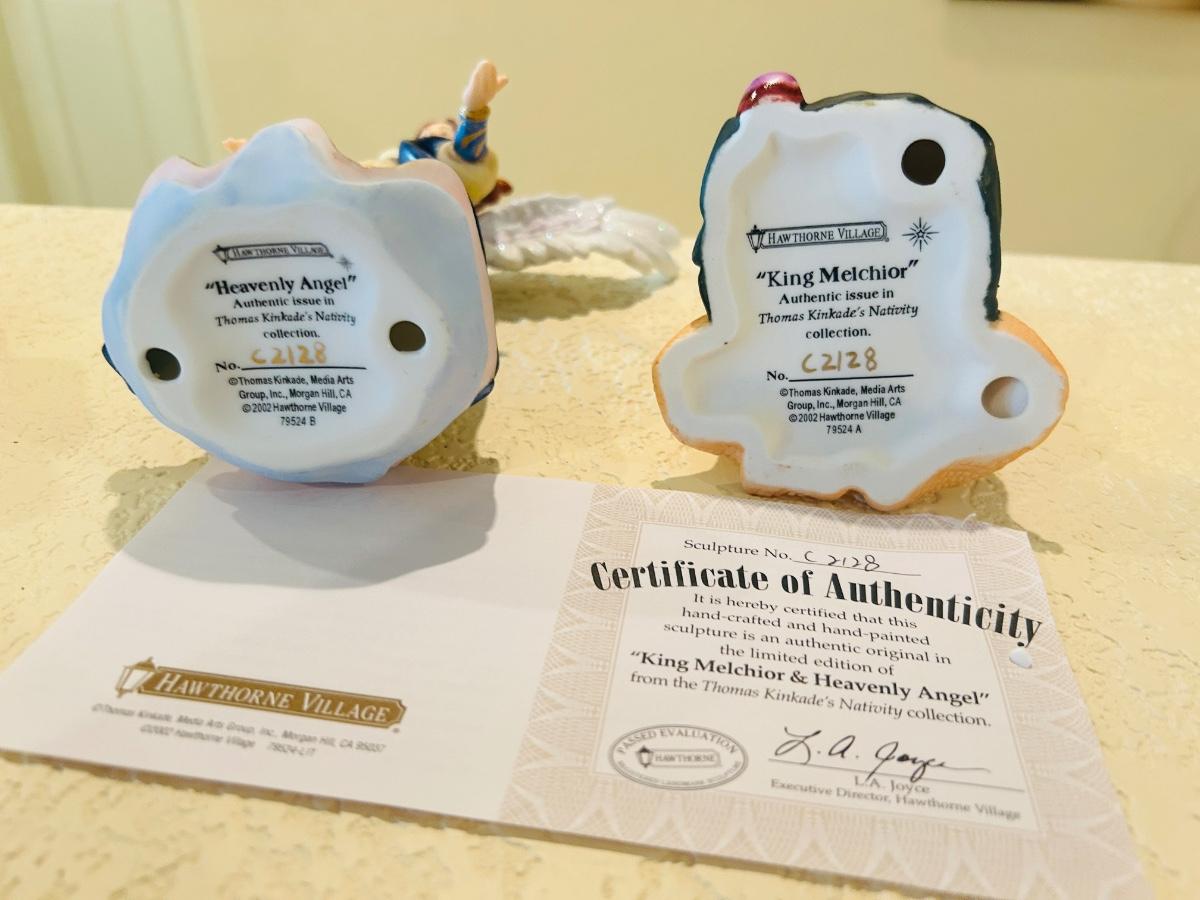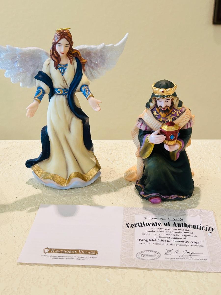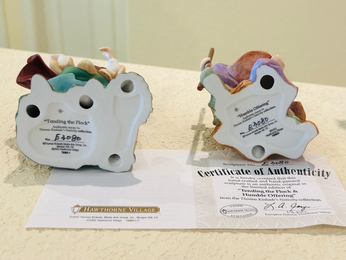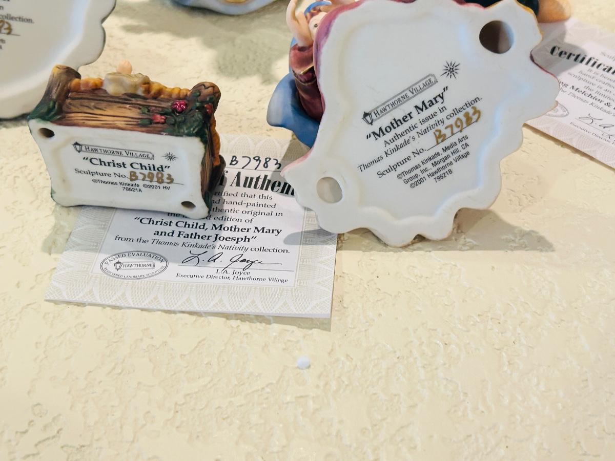 “CHRIST CHILD, MOTHER MARY AND FATHER JOSEPH”, KING MELCHIOR AND HEAVENLY ANGEL TENDING THE FLOCK AND HUMBLE OFFERING FROM THE THOMAS KINKAID COLLECTION AT THE BRADFORD EXCHANGE