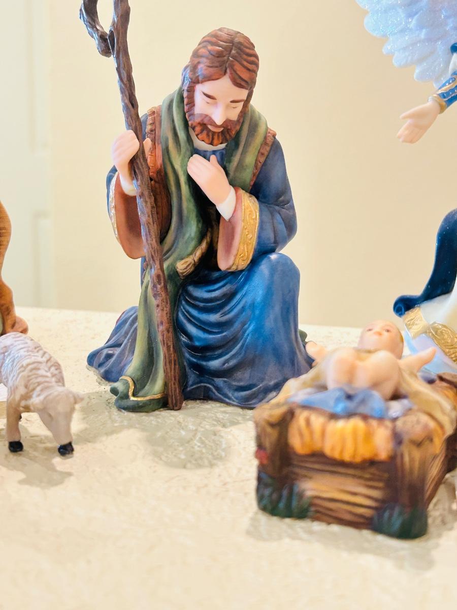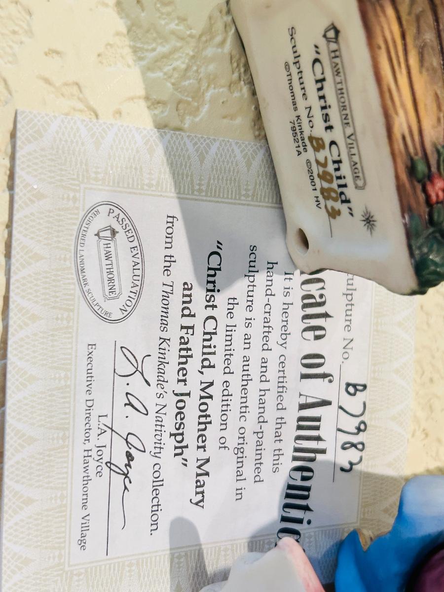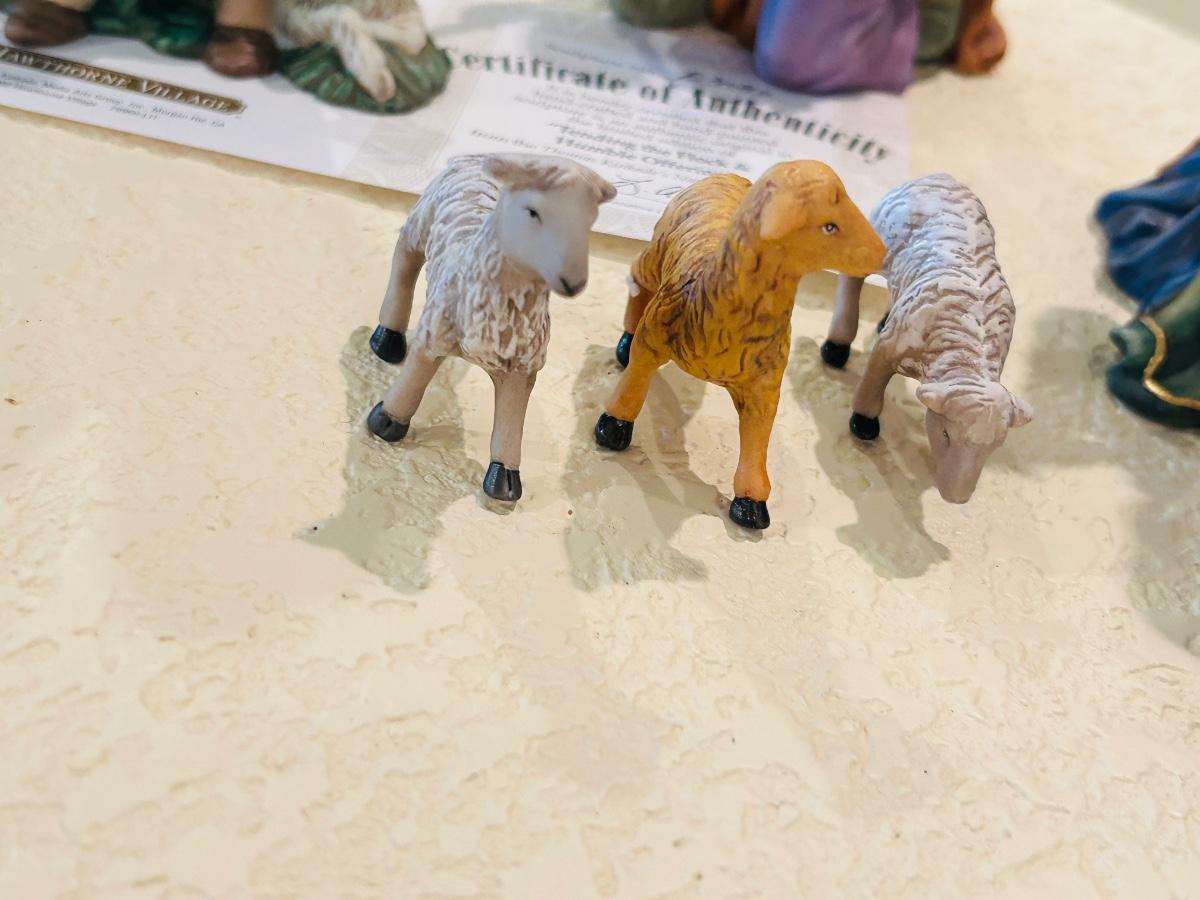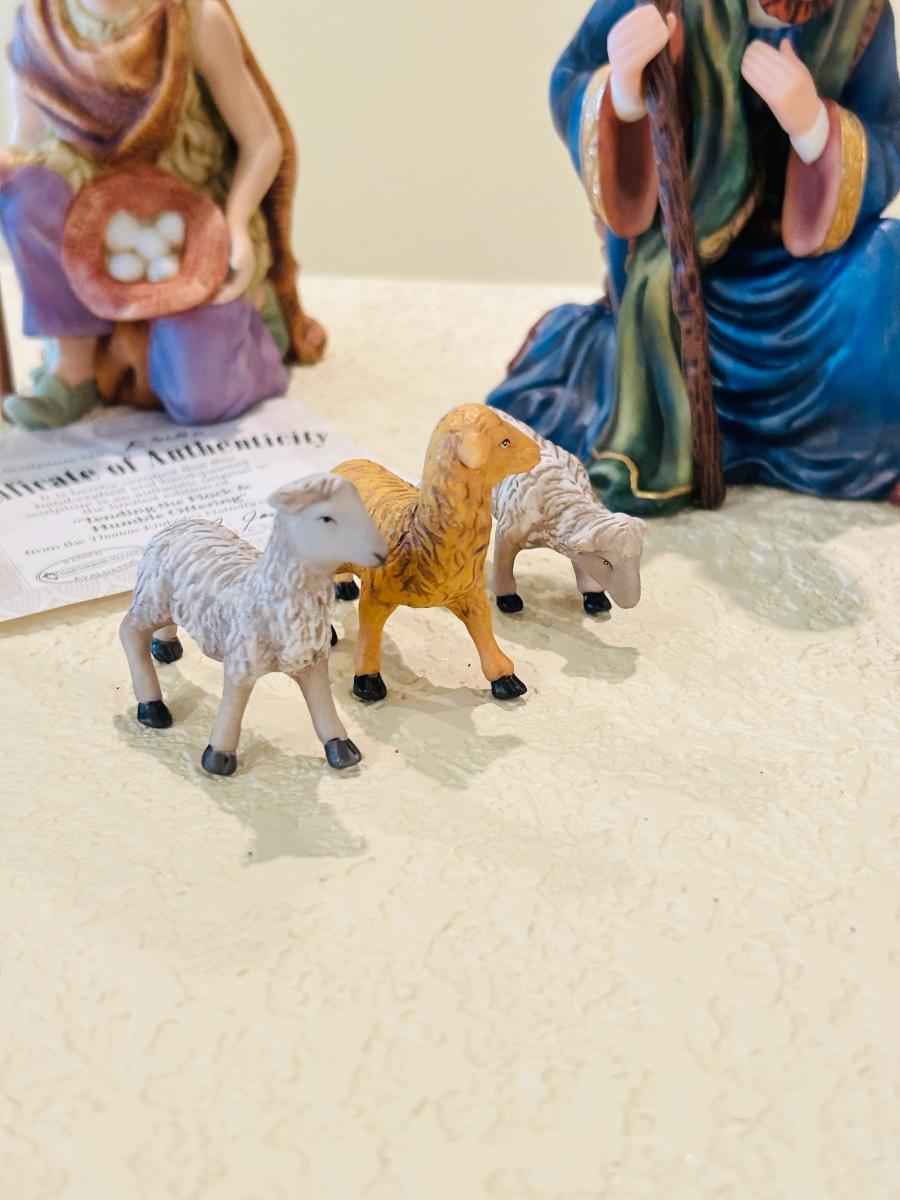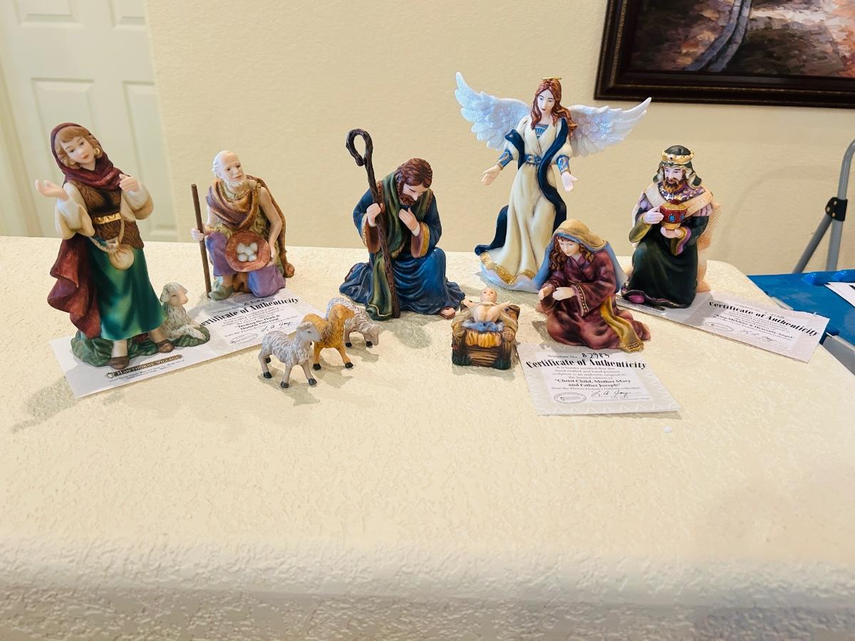 “CHRIST CHILD, MOTHER MARY AND FATHER JOSEPH”, KING MELCHIOR AND HEAVENLY ANGEL TENDING THE FLOCK AND HUMBLE OFFERING FROM THE THOMAS KINKAID COLLECTION AT THE BRADFORD EXCHANGE