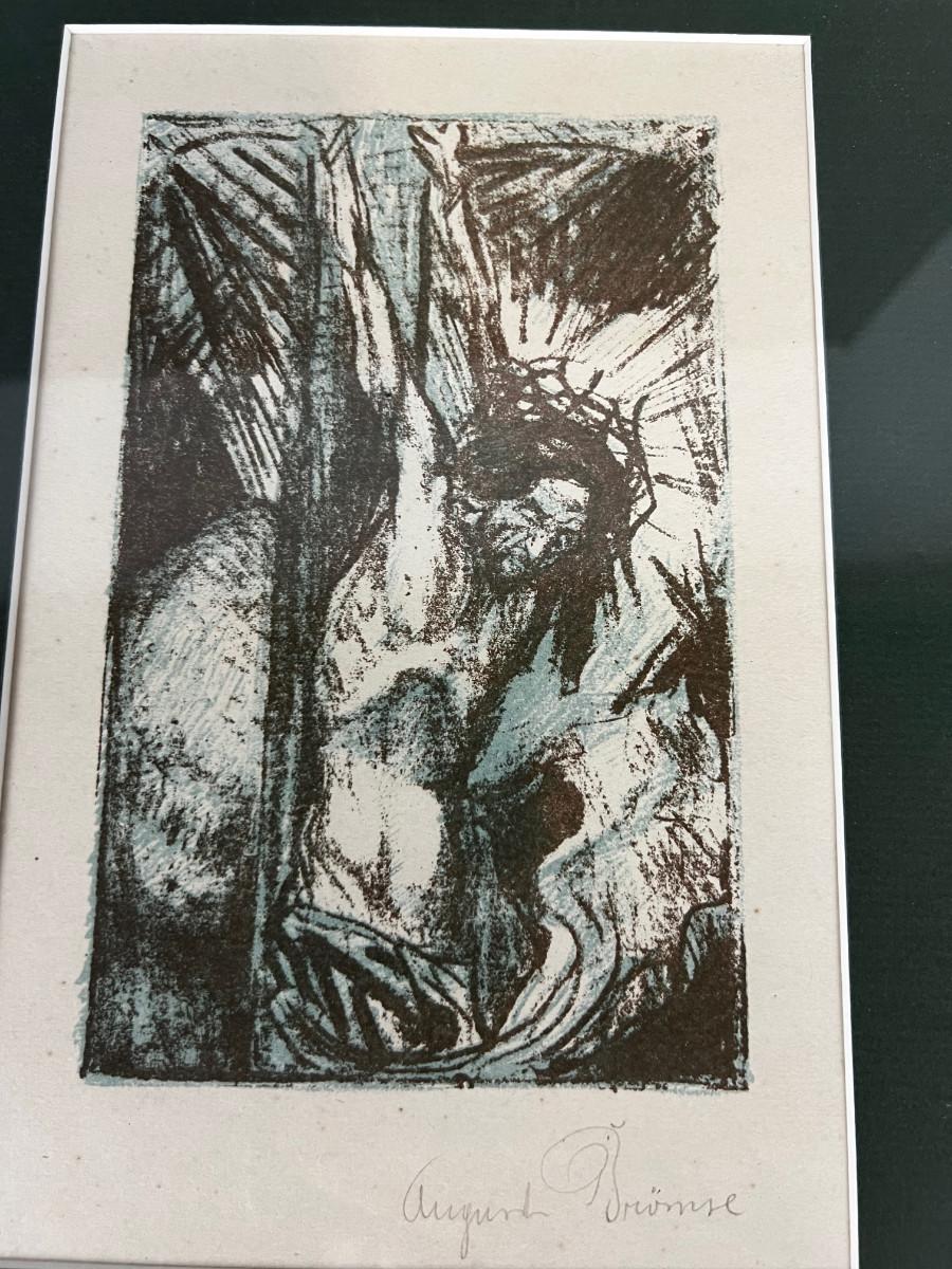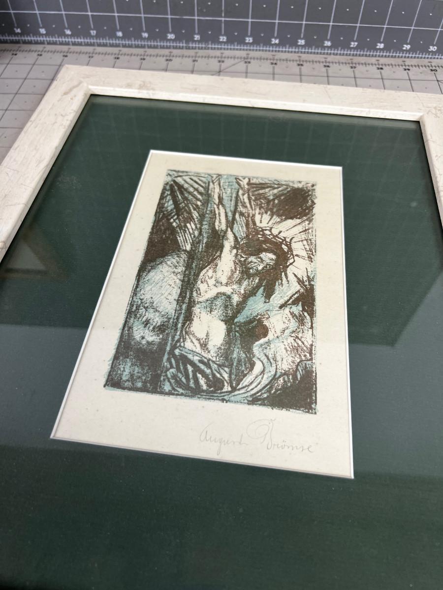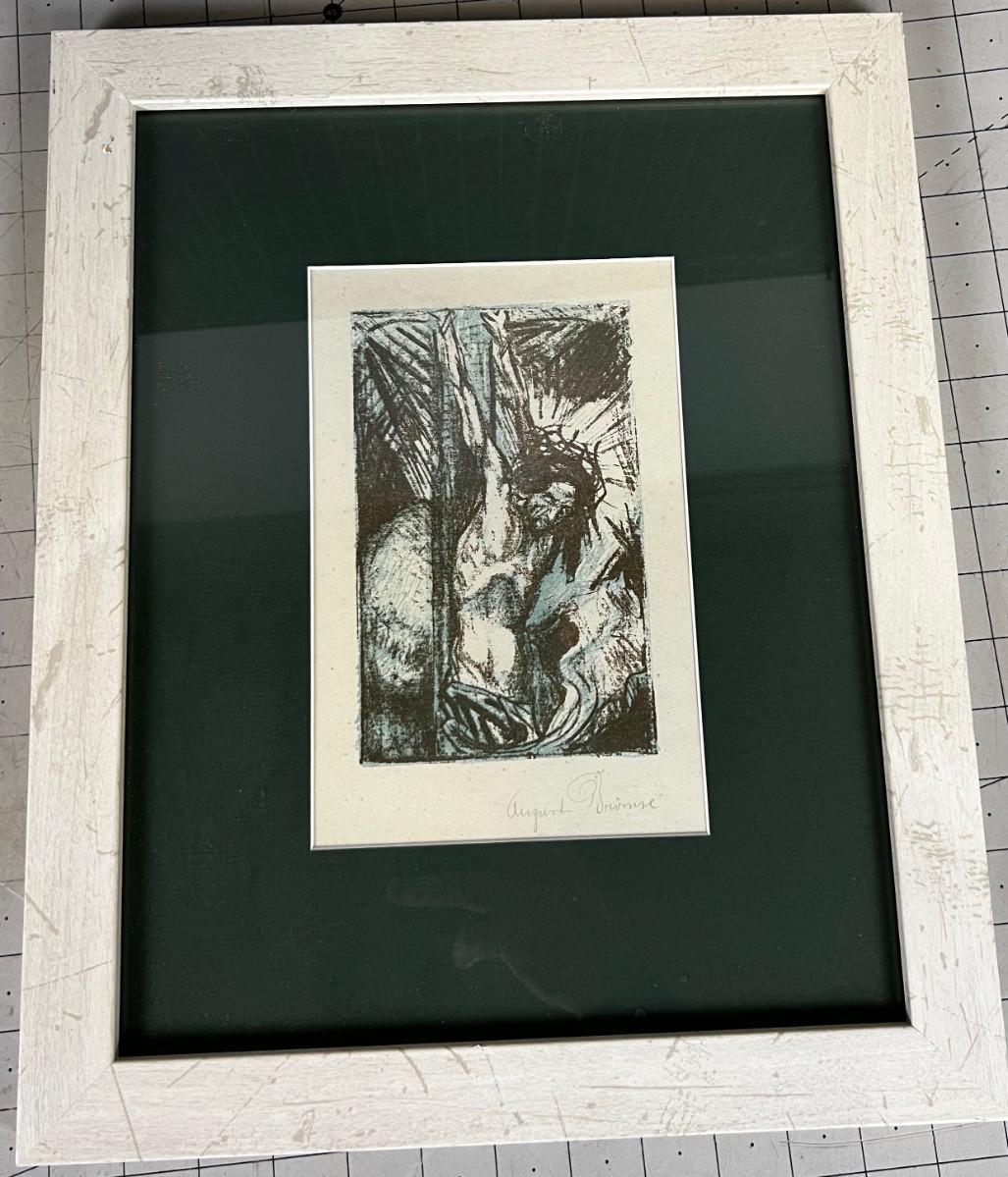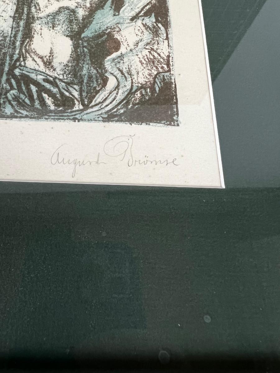 August Bronze? Excellent condition, pencil signed block print framed and matted, 13x16" overall