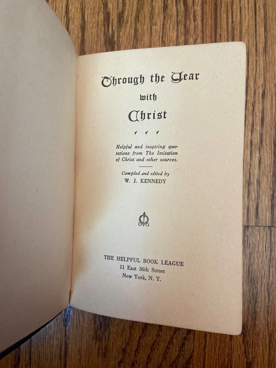Through The Year With Christ compiled and edited by W.J. Kennedy (1934) black softcover,