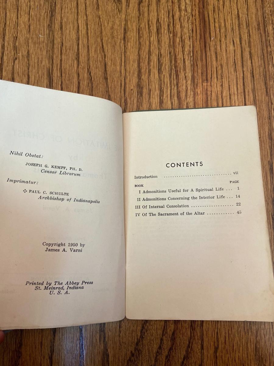 The Imitation of Christ by Thomas à Kempis (1950) condensed by James A. Varni, A Grail Publication, green pamphlet,