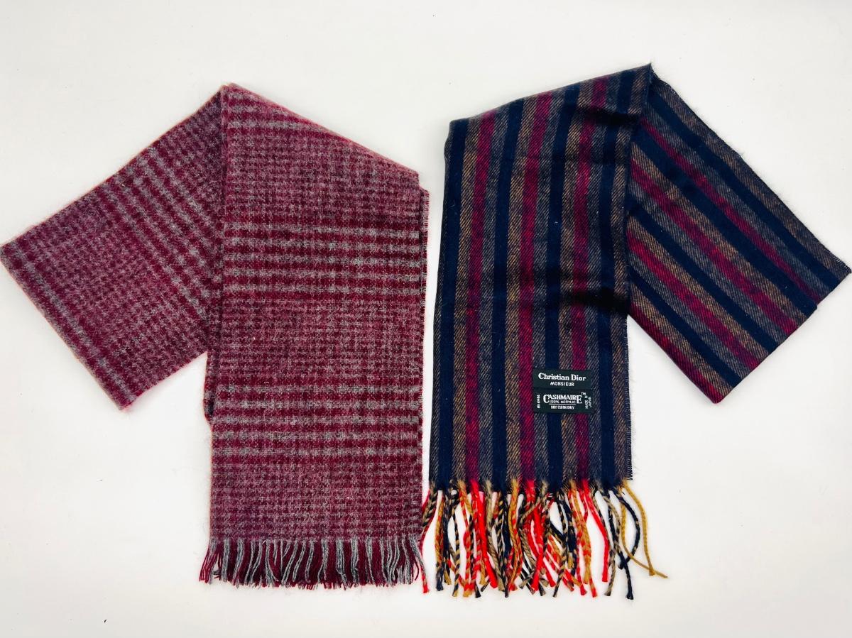 Christian Dior Cashmere Plaid Rectangle Scarf Fringe Trim & 100% Acrylic Made in Western Germany Scarf.