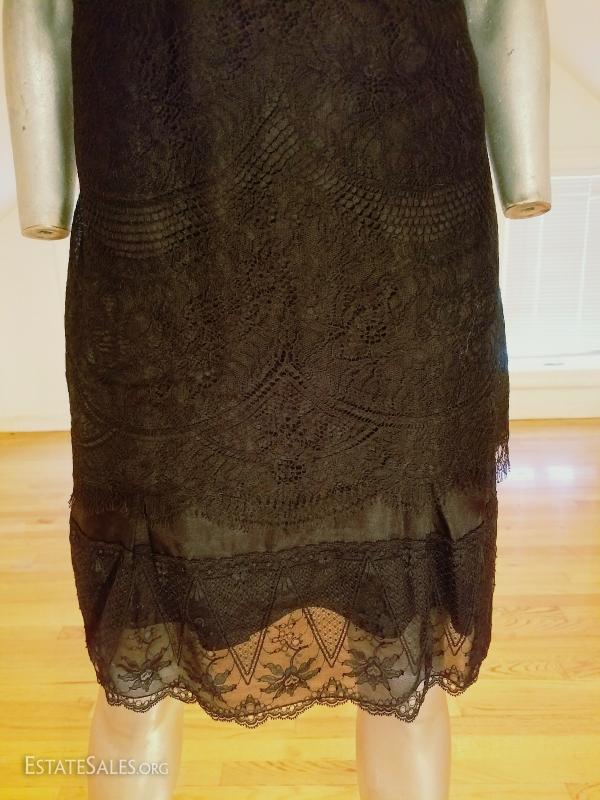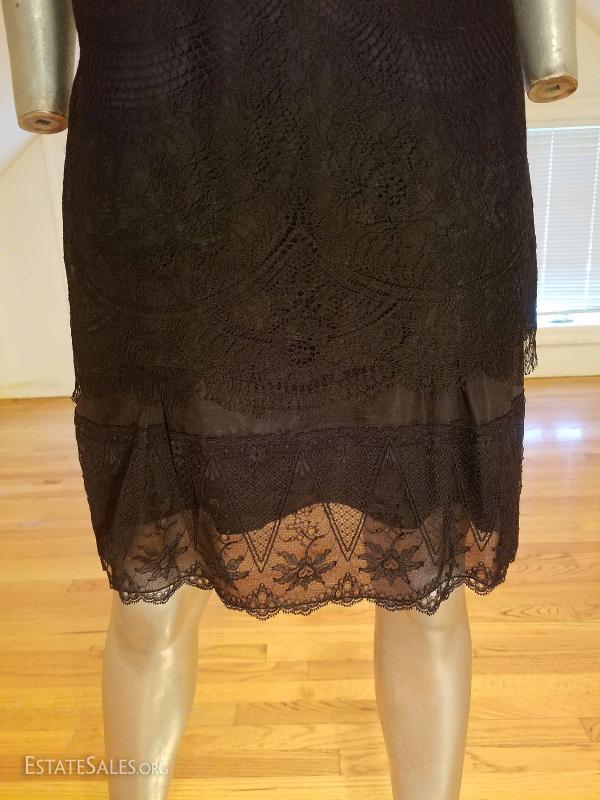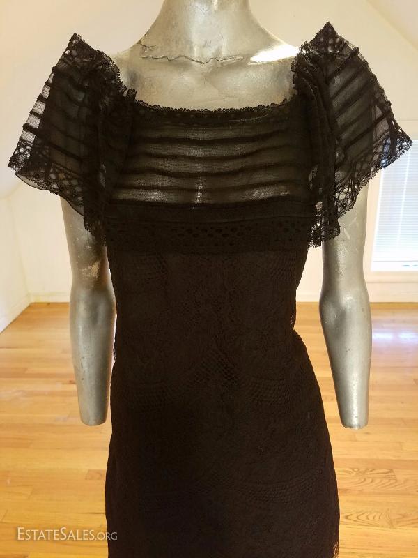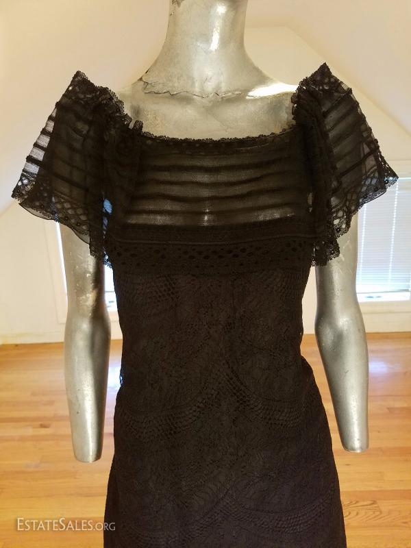 Iconic runway dress by Iconic couture designer Christian Lacroix Chantilly lace layered with silk organza backing, Poet gathered neckline with the lace and organza plus ribbons. True Couture and was used only for a runway show in Toulouse, France.A collector's dream a one of a kind.
