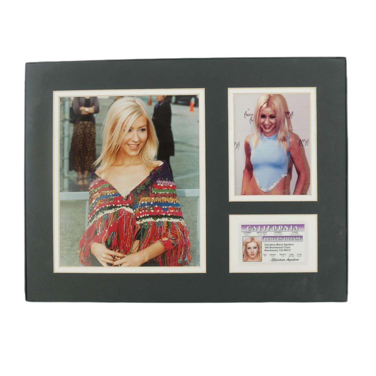 Vintage Young Christina Aguilera photo memorabilia board, with frame and matte, no glass.