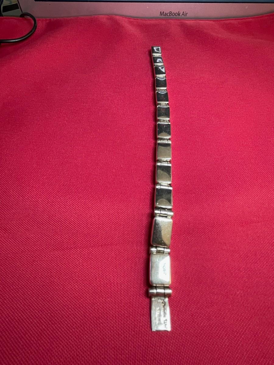 Christin Wolf Signed Sterling Native American link bracelet 39g
