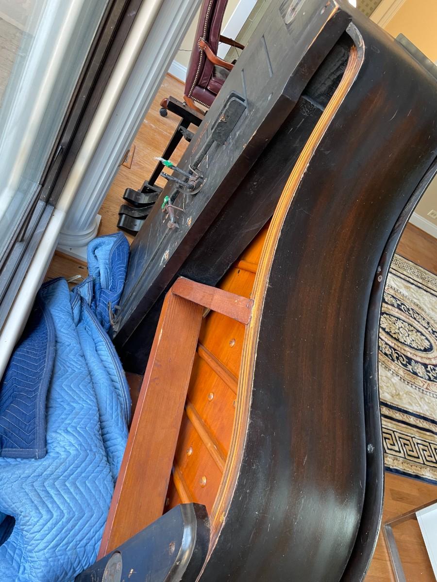 60L x 54W x 38H. Need to be reassembled and tuning.