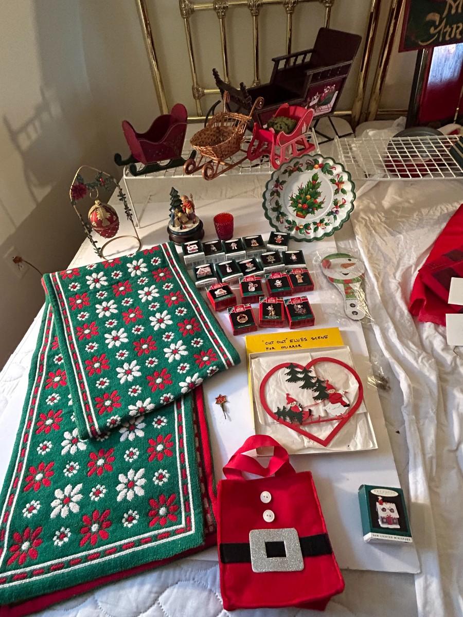 Do you or someone you know collect Hallmark Christmas ornaments? Then this lot is for you, Linens and one of a kind finds.