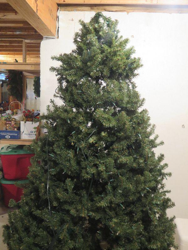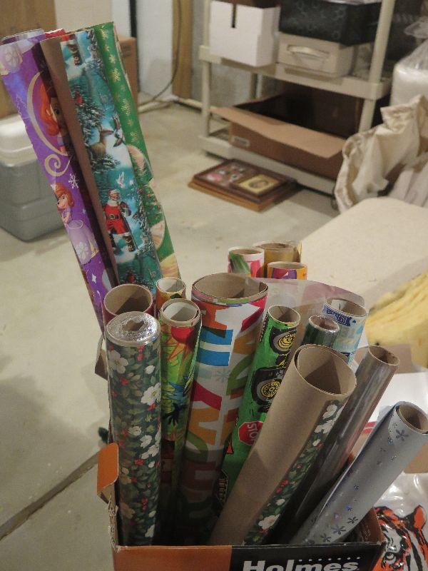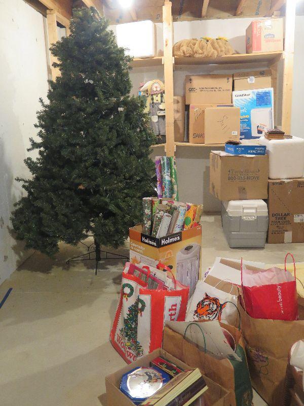 Eight foot tree with lights, untested, wrapping paper, gift boxes, ribbon, and more. Located in basement. **Please read Terms and Conditions before placing a bid. Pick up is Wednesday July 31st, from 2 pm to 7pm in Sicklerville. All sales are final. All sales are as is, where is. Please review all photos. Any props included in photos are not included in listing. All measurements are approximate.