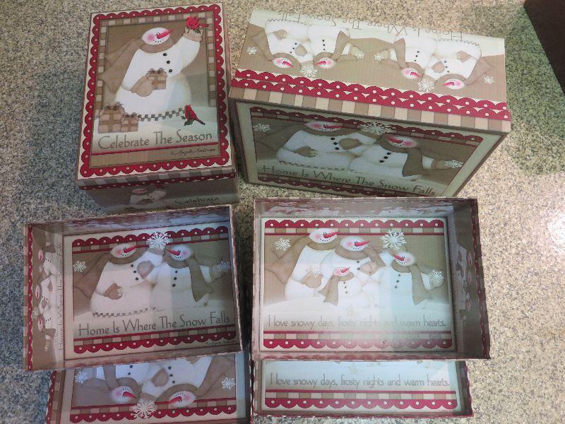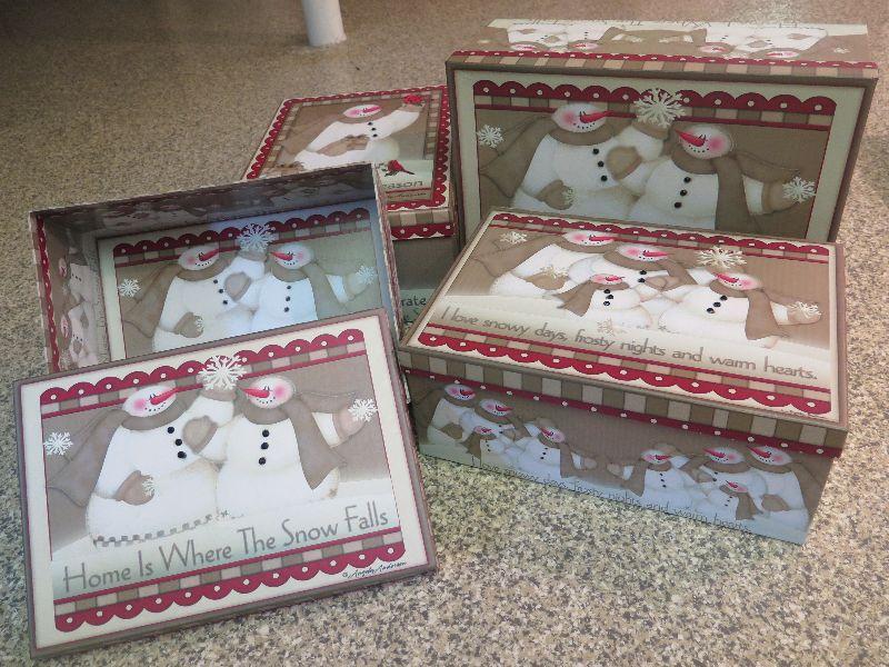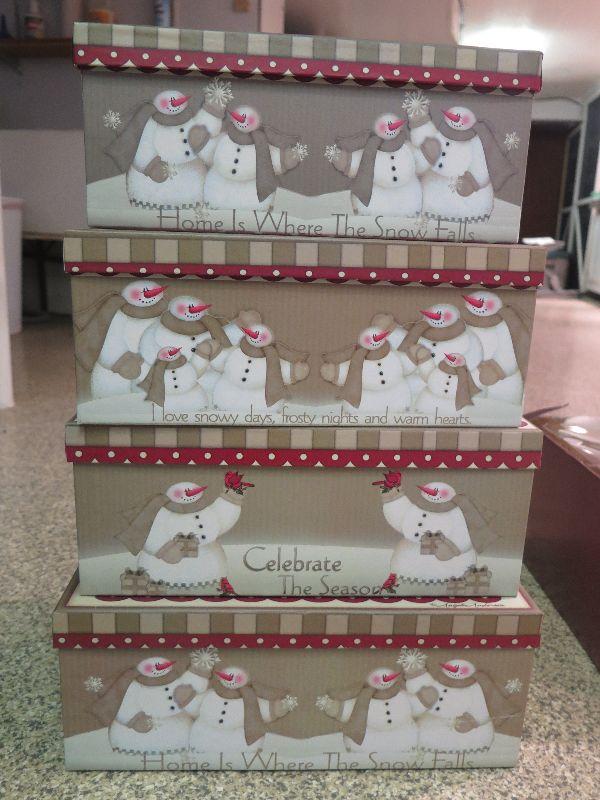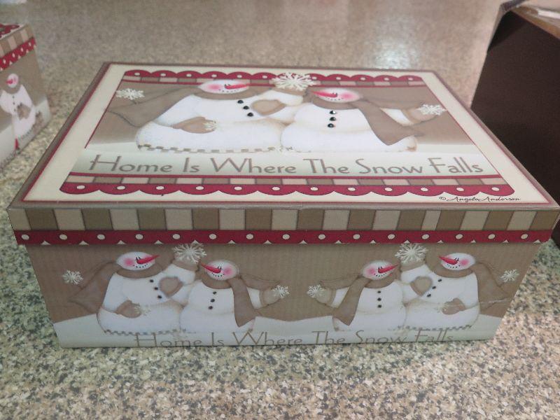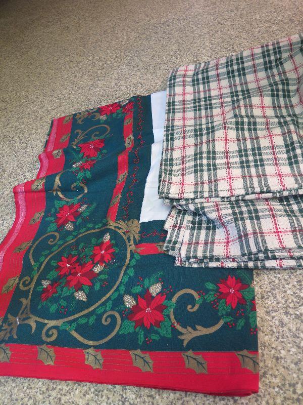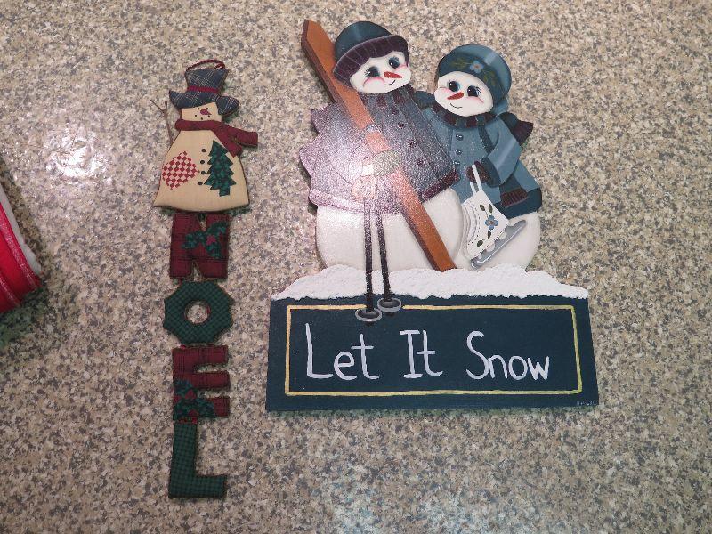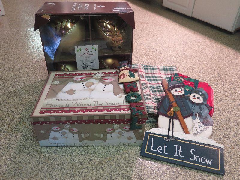 Large ball ornaments, tole painted Let It Snow sign, two tablecloths, plaid is 96x52, and the other is 83x60, with a small stain. Decor boxes, largest it 16x11x6.5. Remove from basement. Please read Terms and Conditions before placing a bid. Pick up is Friday, October 25th between 4 and 7, and Saturday, October 26th between 9 and 1. Props included in photos are not included in listing. All measurements are approximate. Comes from home with cats.