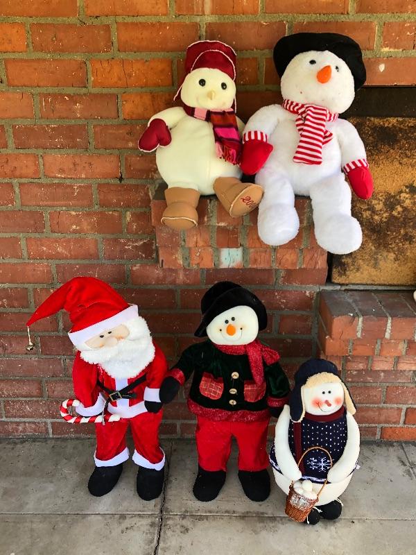 Christmas Plush Decor Lot, Santa Clause and Snowmen