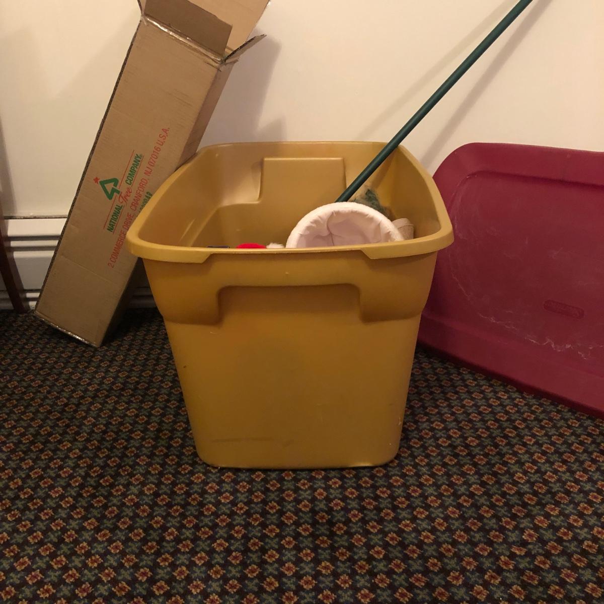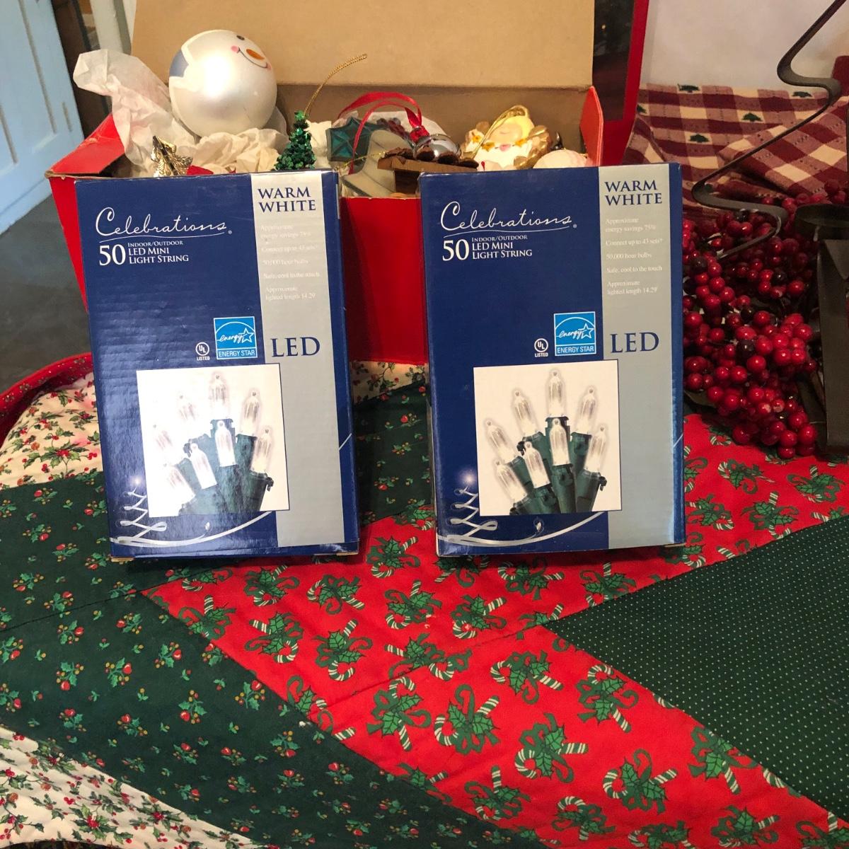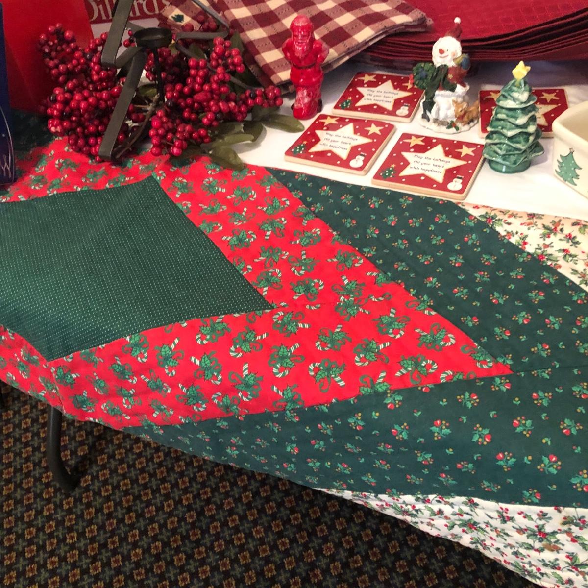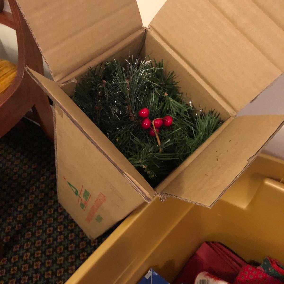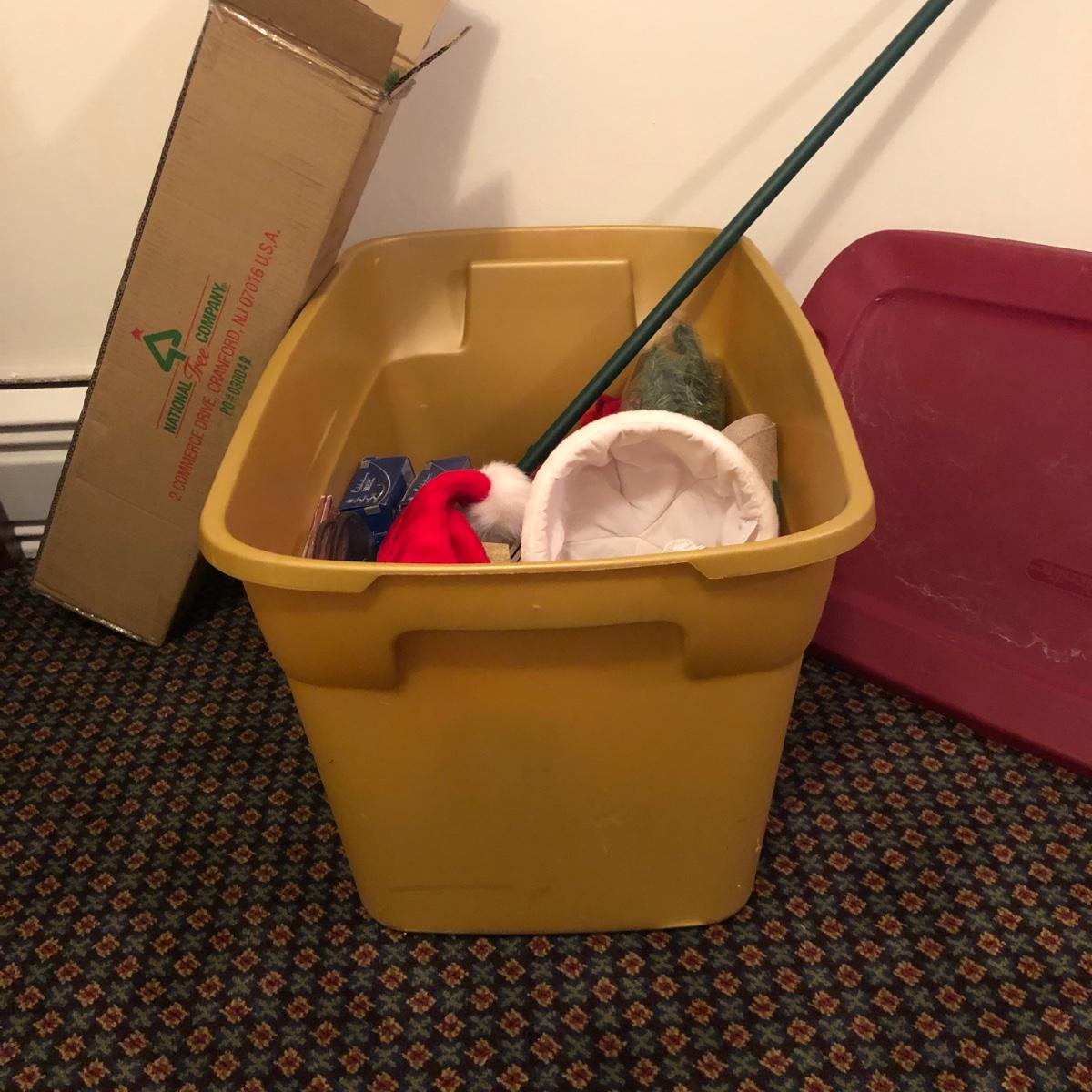 This Christmas collection in the plastic tub has a little bit of everything for decorating the table and home for Christmas. The assortment in the tub includes Santa hats, white crocheted napkin holders, Christmas glasses, a dancing Santa in box, faux evergreen greenery with holly berries, LED white Christmas lights, tablecloths, placemats & napkins, coasters, ornaments, a Christmas tree punch dispenser, Santa and Tree salt and pepper shakers, and much more. The dancing Santa box measures 10” x 17” x 5.56”. Local pickup only.