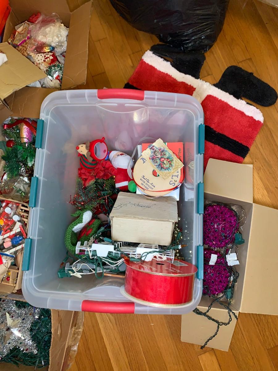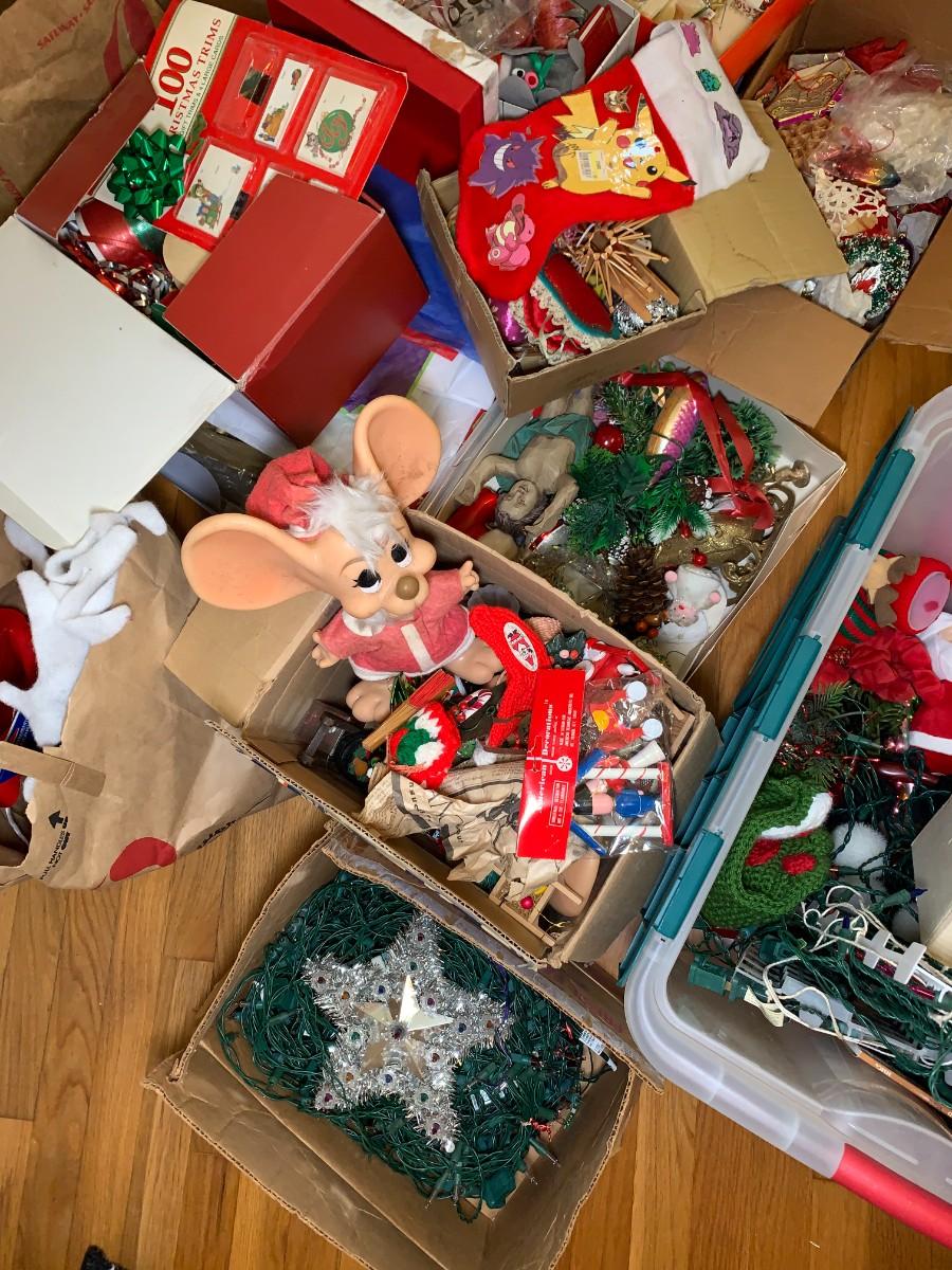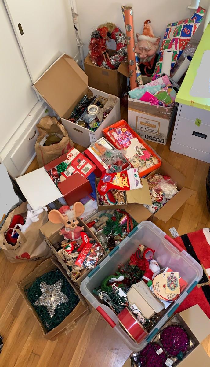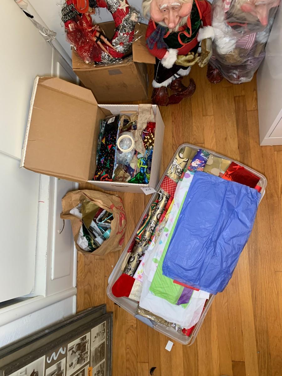 Large lot of Christmas holiday décor. Gift wrap includes Christmas and other occasions. Not checked for parts, not tested