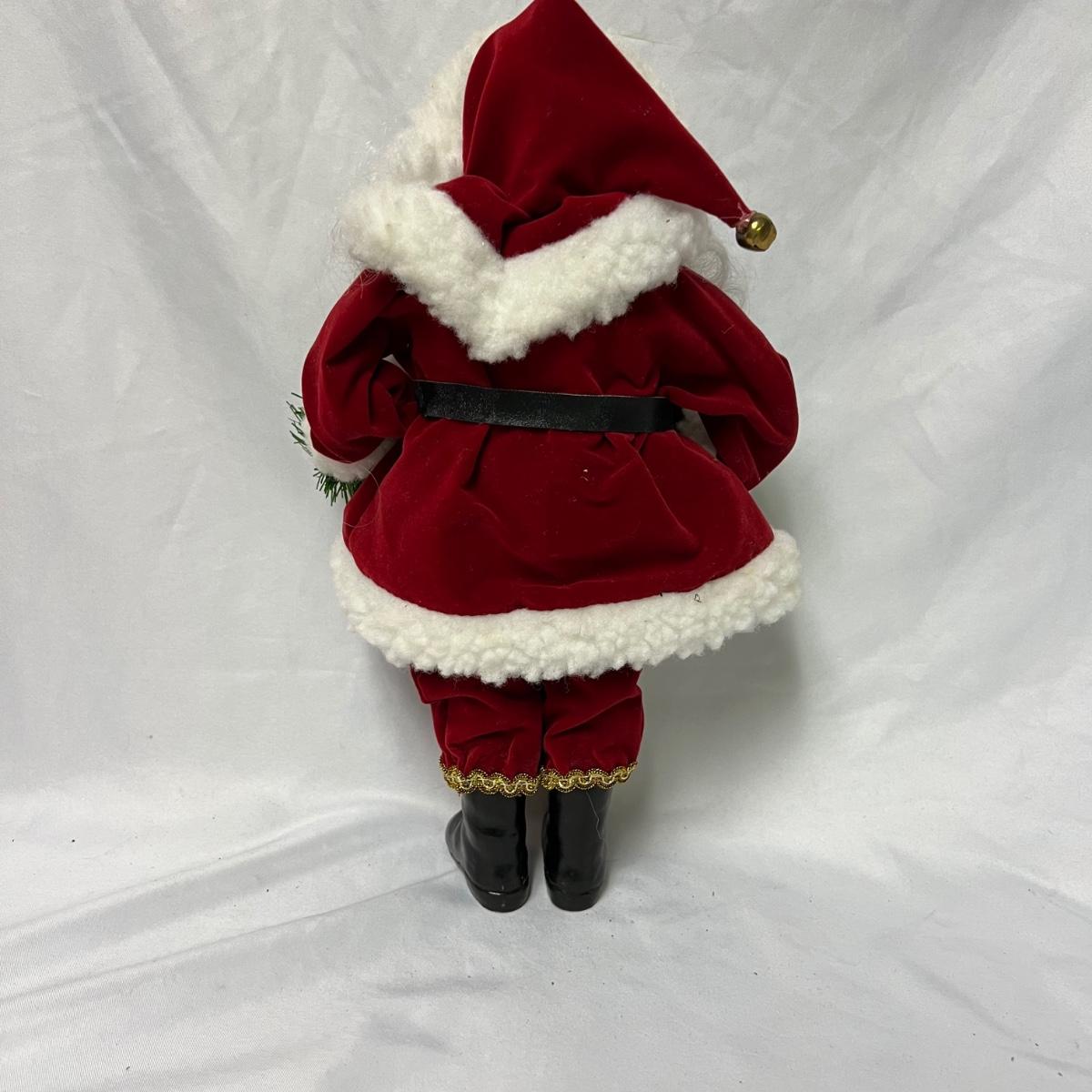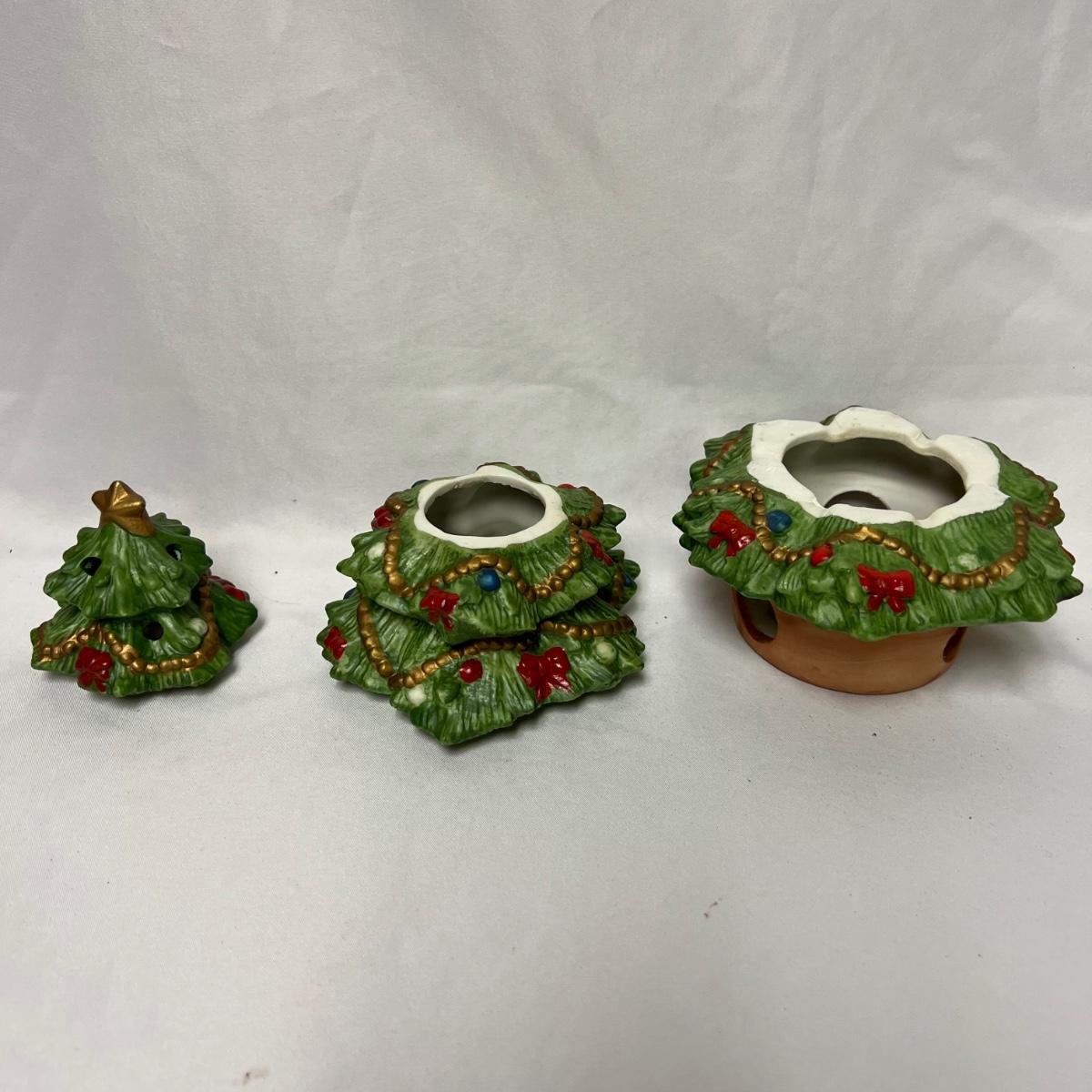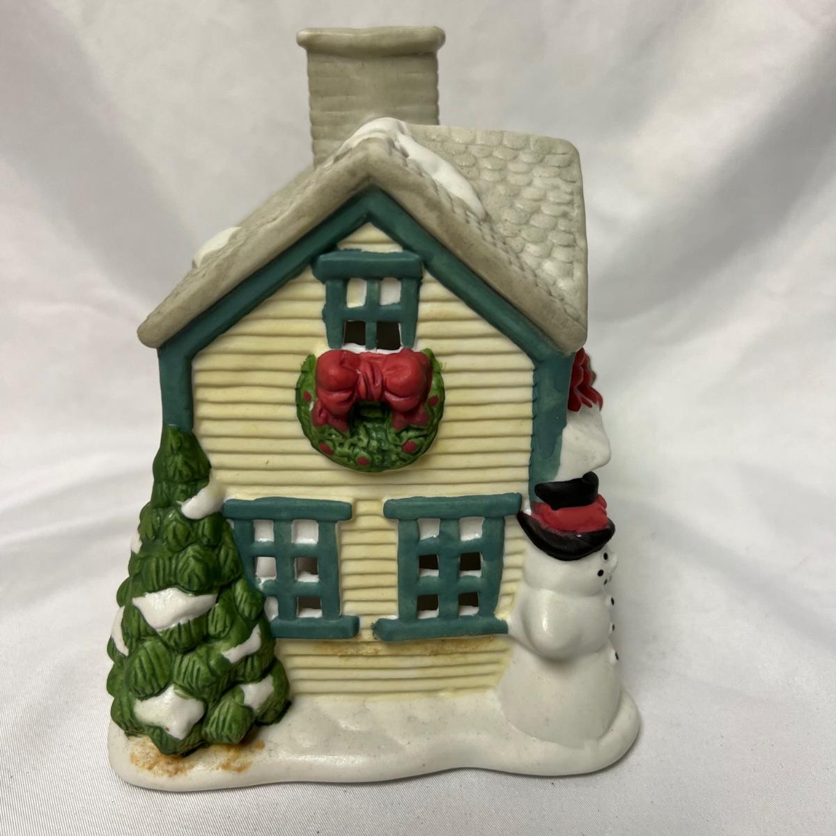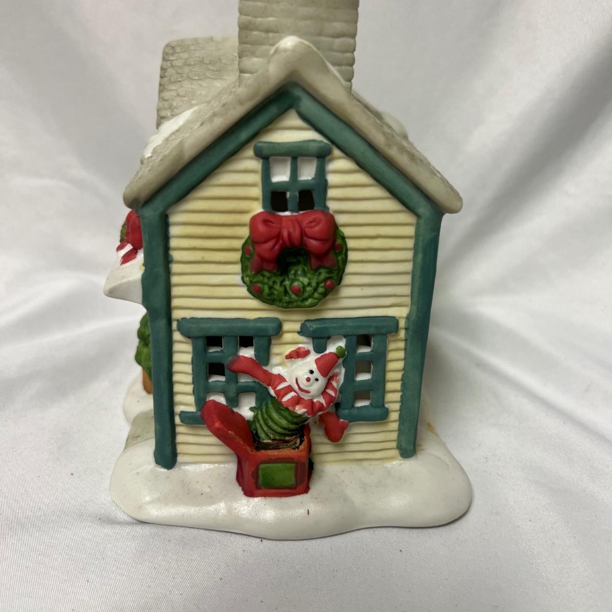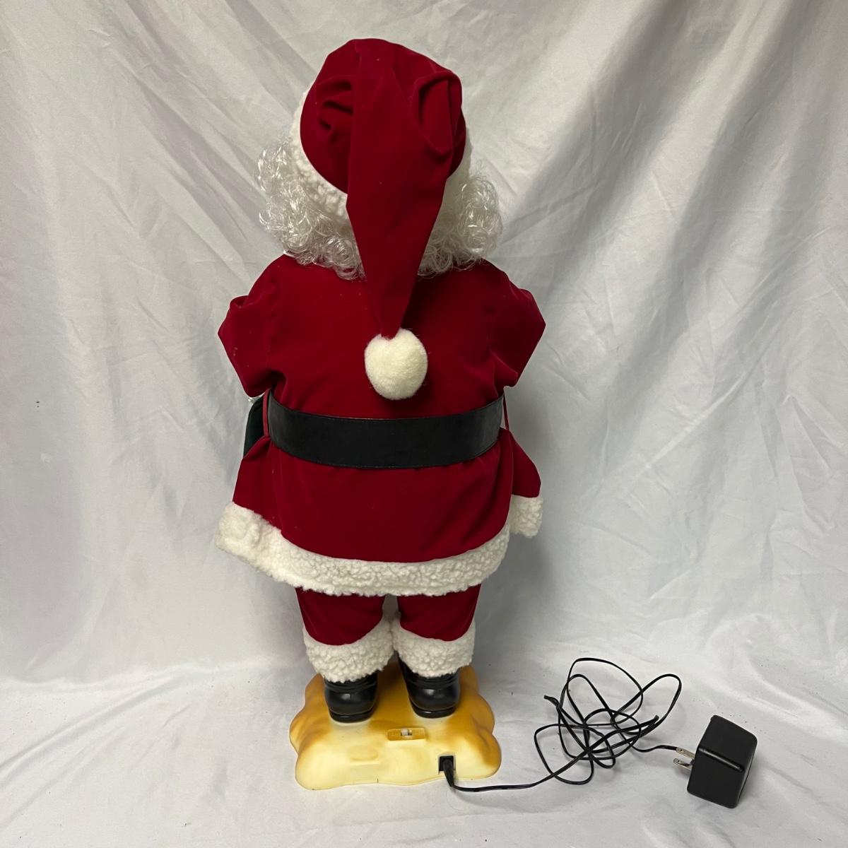 Large electric Santa. Head moves side to side and arms move up and down. His electronics work, the light bulb in hand was burned out. This Santa measures 11” x 7” x 24"H. A wonderful holiday greeter for the front porch. Santa sculpture riding a moose (Rocky Mtn. Reindeer) is detailed and colorful and measures 10.5” x 11.5” x 17"H. Two ceramic (both appear to be porcelain) candle votives. One a three-tier tree measuring 5.5” x 5.5” x 7"H. The house measures 5.5” x 4” x 6"H. The charming ceramic sleigh sculpture lights up and says it is a music box. This could not be tested as the batteries were not operational. Seems just perfect for the mantel and measures 11” x 3” x 4"H.
