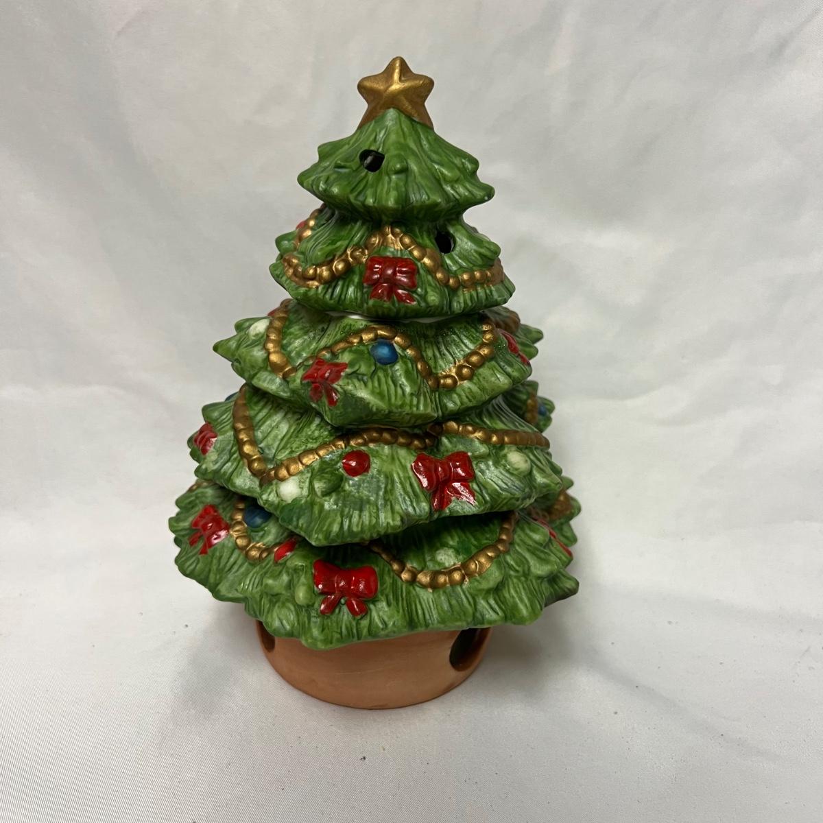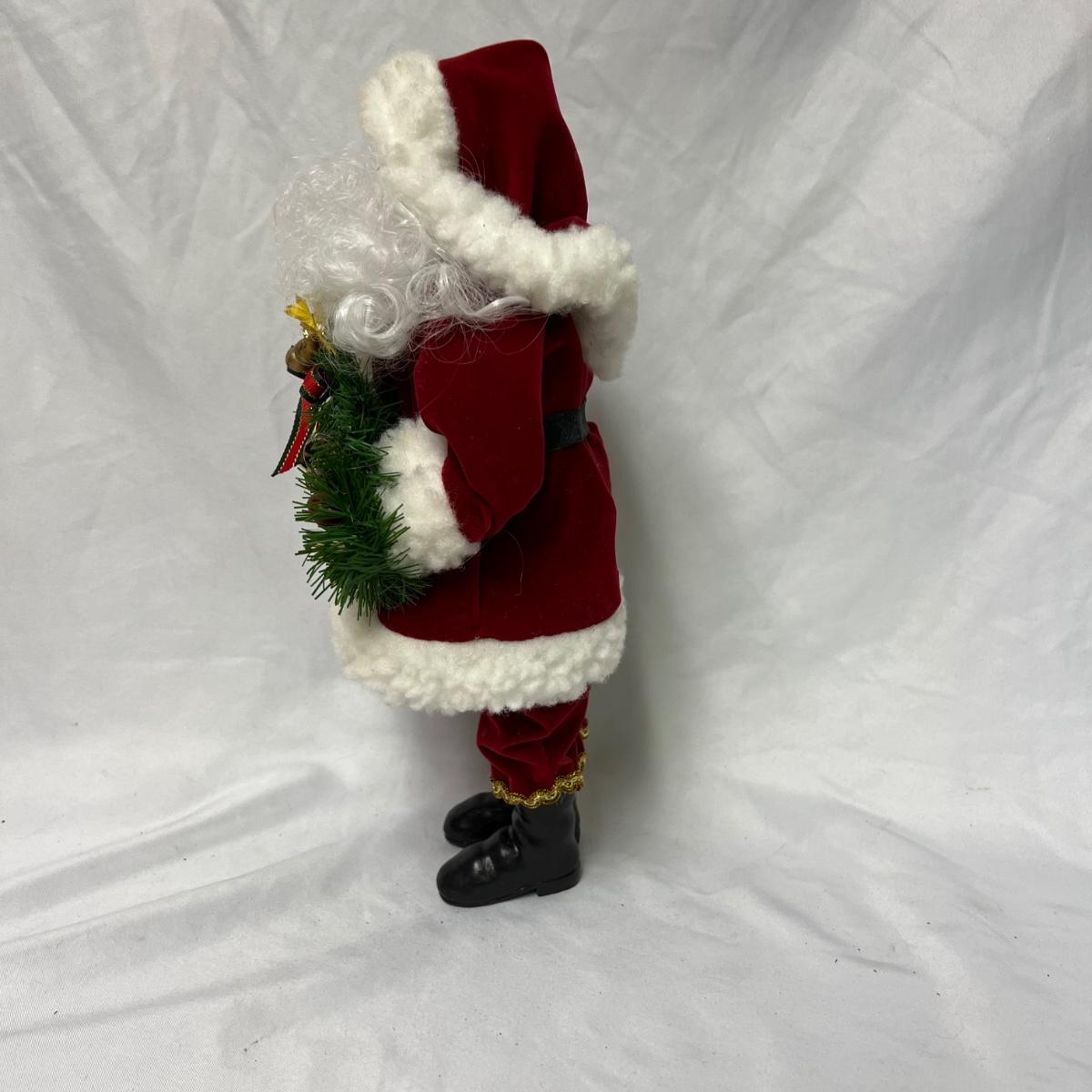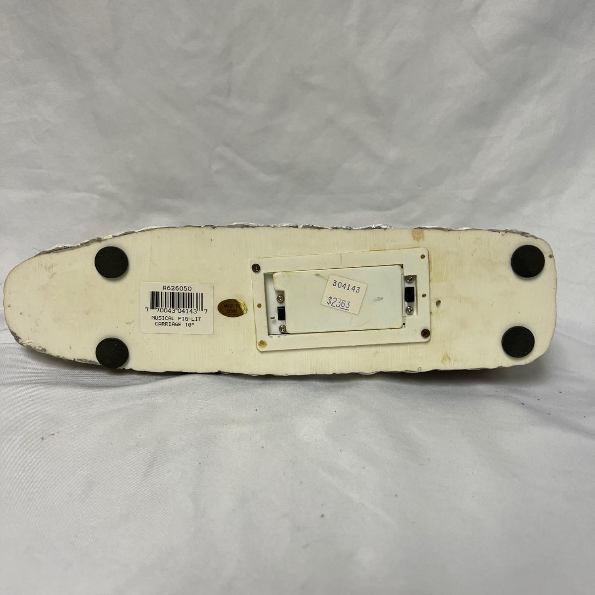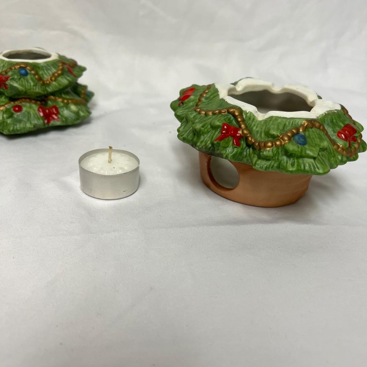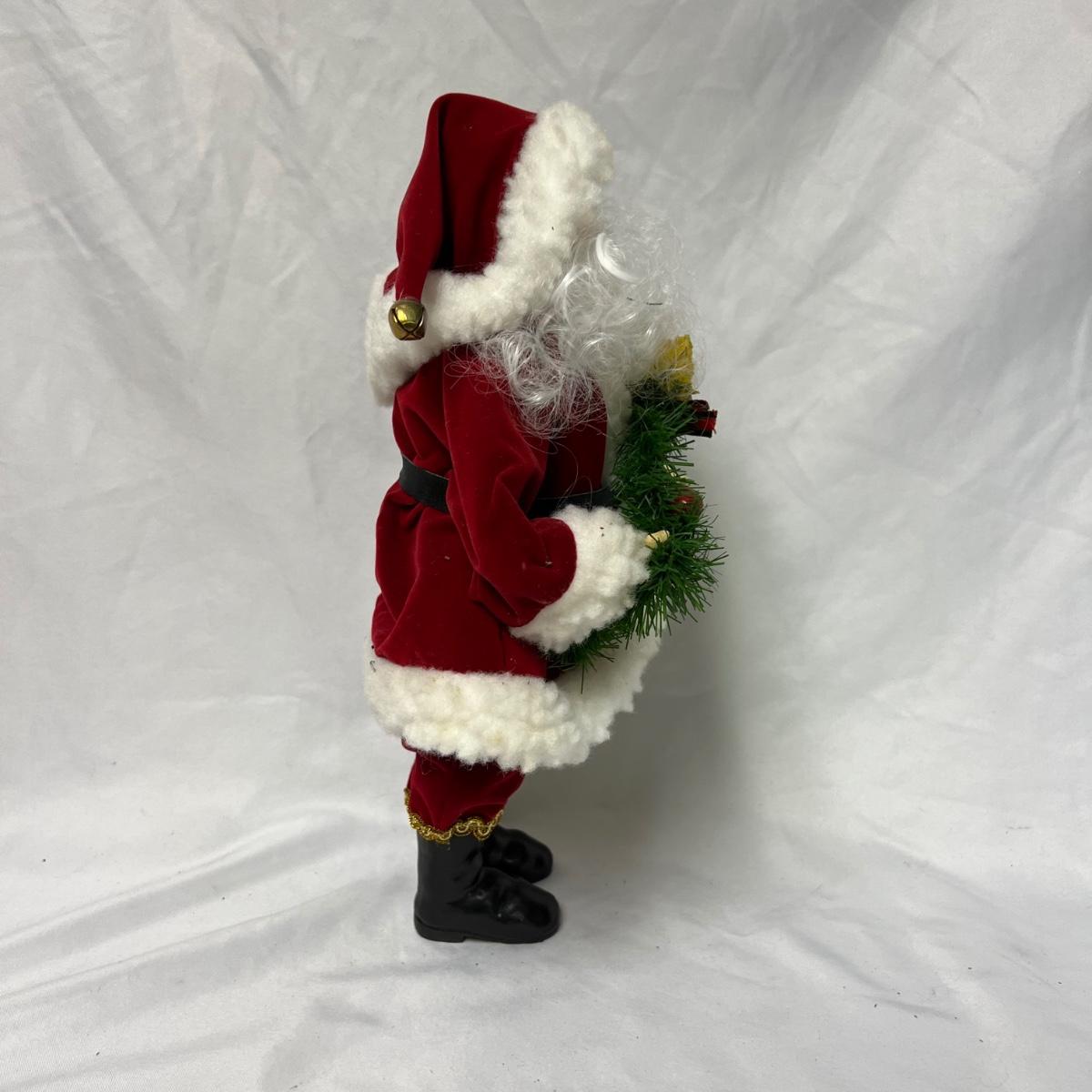 Large electric Santa. Head moves side to side and arms move up and down. His electronics work, the light bulb in hand was burned out. This Santa measures 11” x 7” x 24"H. A wonderful holiday greeter for the front porch. Santa sculpture riding a moose (Rocky Mtn. Reindeer) is detailed and colorful and measures 10.5” x 11.5” x 17"H. Two ceramic (both appear to be porcelain) candle votives. One a three-tier tree measuring 5.5” x 5.5” x 7"H. The house measures 5.5” x 4” x 6"H. The charming ceramic sleigh sculpture lights up and says it is a music box. This could not be tested as the batteries were not operational. Seems just perfect for the mantel and measures 11” x 3” x 4"H.