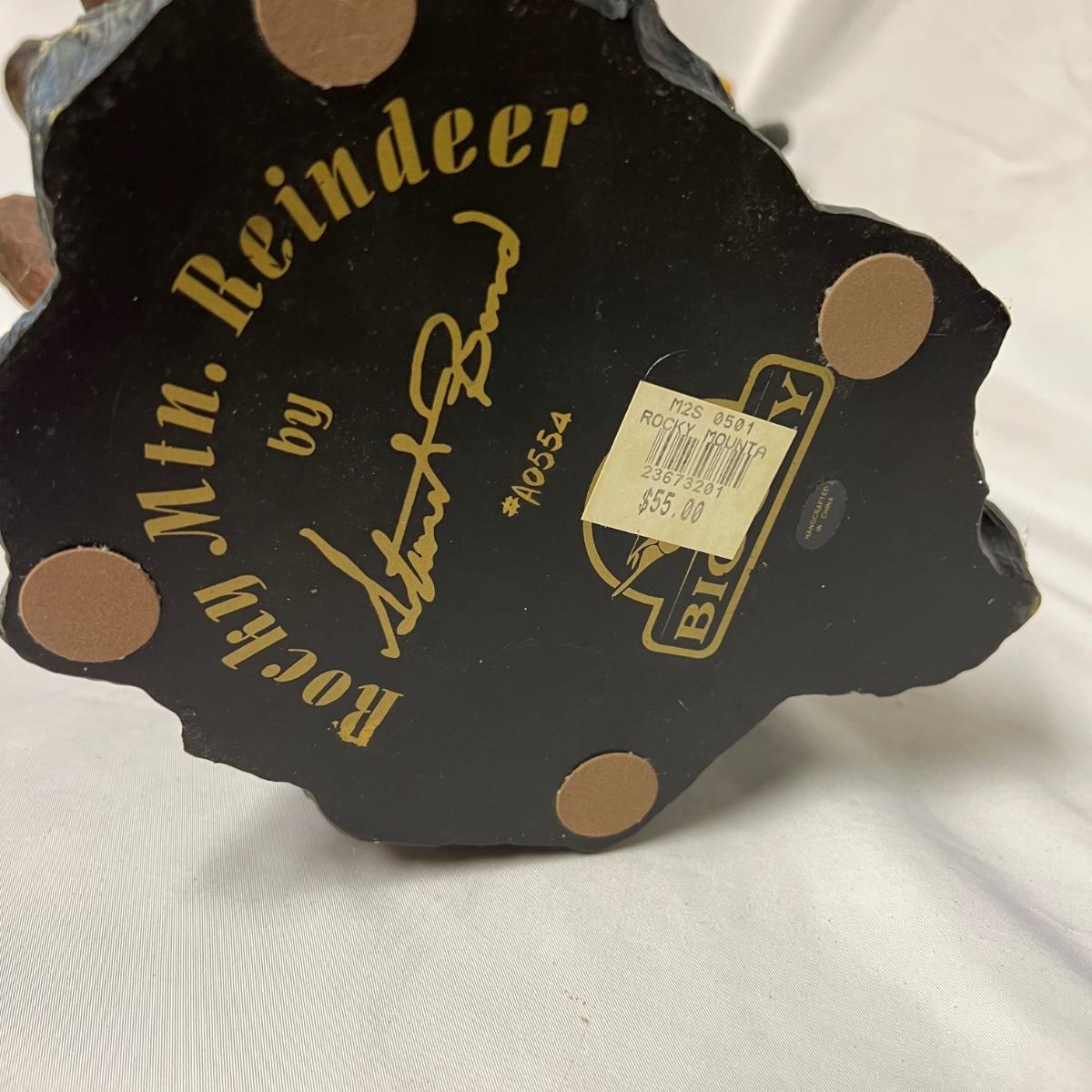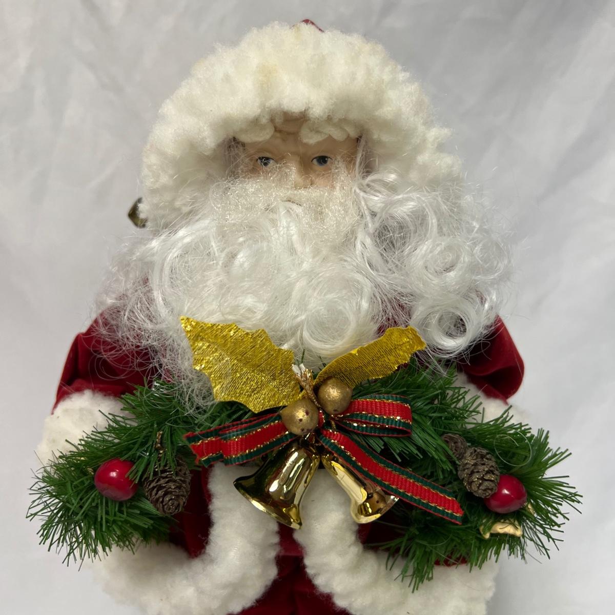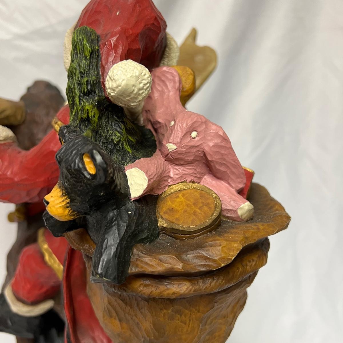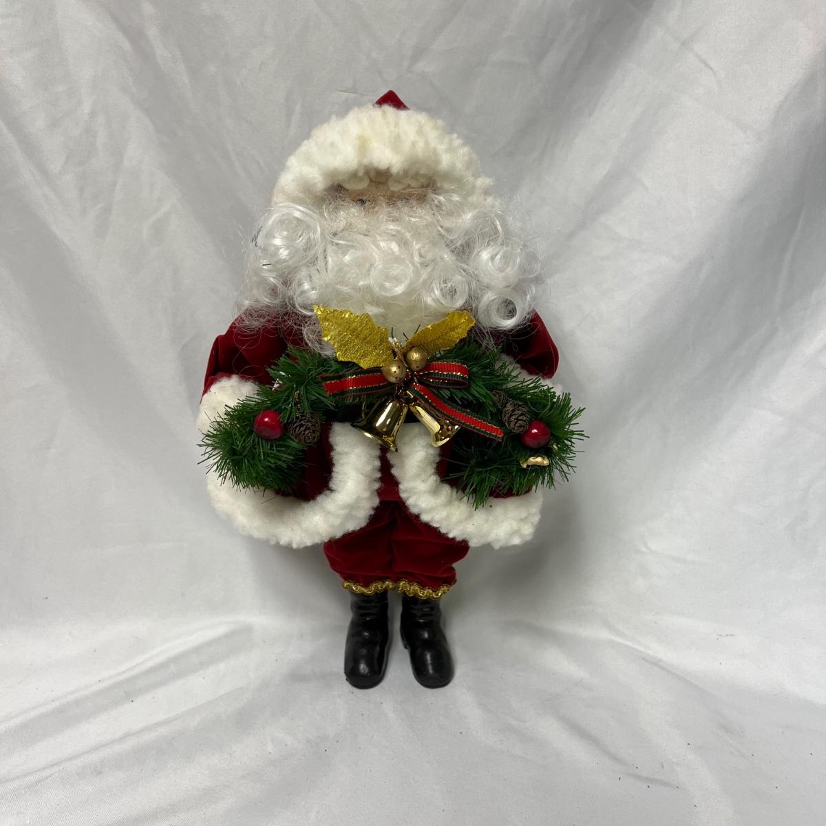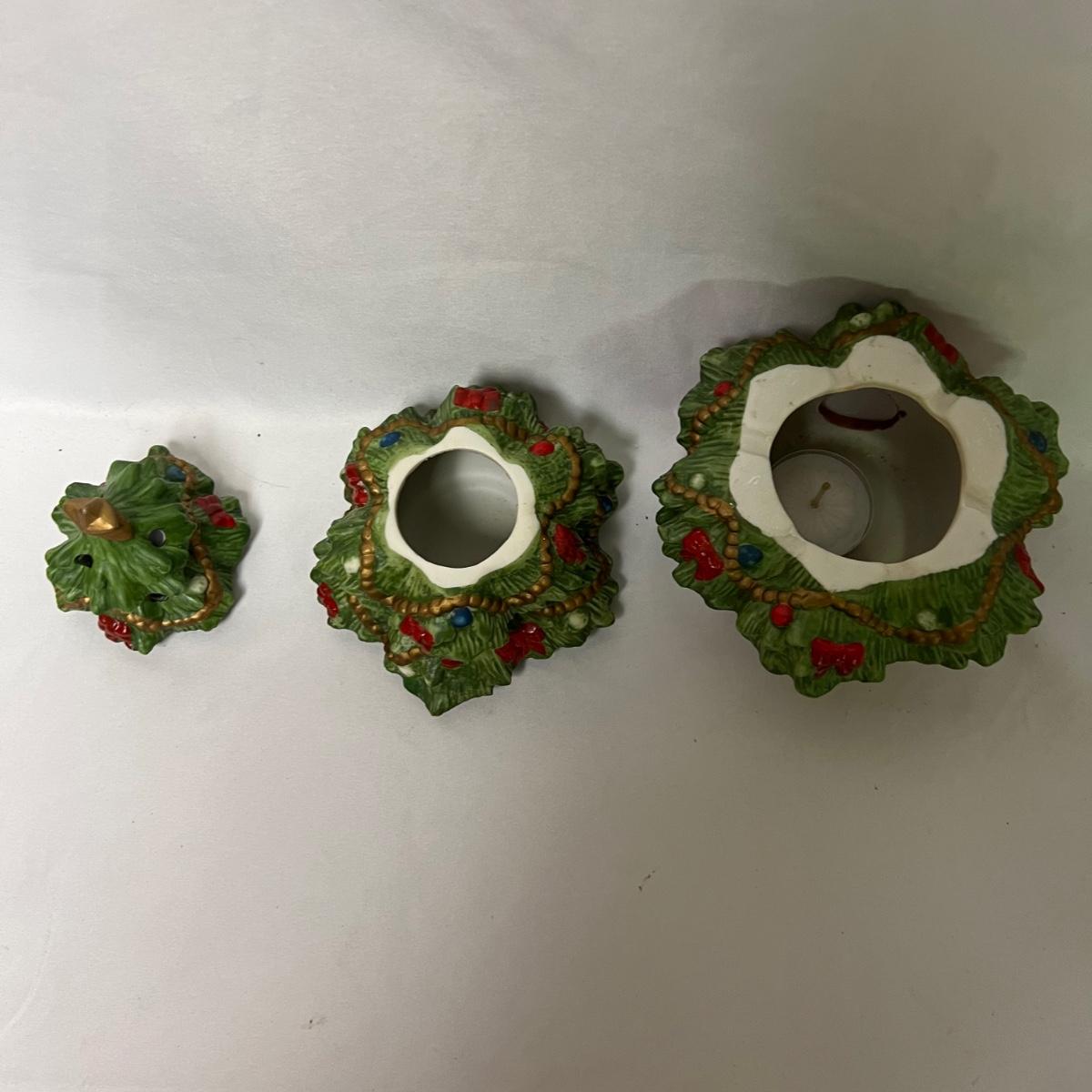 Large electric Santa. Head moves side to side and arms move up and down. His electronics work, the light bulb in hand was burned out. This Santa measures 11” x 7” x 24"H. A wonderful holiday greeter for the front porch. Santa sculpture riding a moose (Rocky Mtn. Reindeer) is detailed and colorful and measures 10.5” x 11.5” x 17"H. Two ceramic (both appear to be porcelain) candle votives. One a three-tier tree measuring 5.5” x 5.5” x 7"H. The house measures 5.5” x 4” x 6"H. The charming ceramic sleigh sculpture lights up and says it is a music box. This could not be tested as the batteries were not operational. Seems just perfect for the mantel and measures 11” x 3” x 4"H.