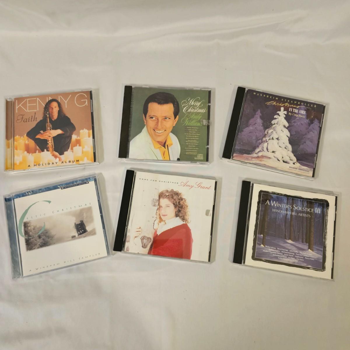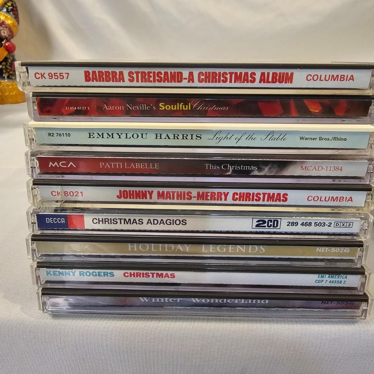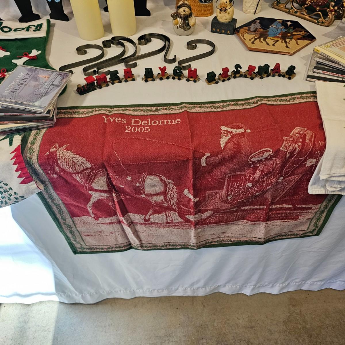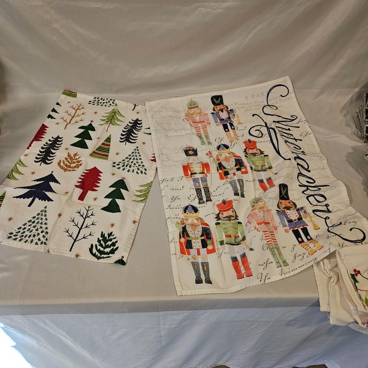 Festive table decorations, towels, stockings, more. Folding nutcracker screen is 24" x 14"H. DeLorme towel is 21" x 27". Also includes six metal stocking hangers and two flameless battery operated candles that turned on when tested. A wide selection of Christmas CDs by favorite artists: Kenny G, Mannheim Steamroller, Andy Williams, more. Over 35 titles included. See photos for details. Local pickup only.