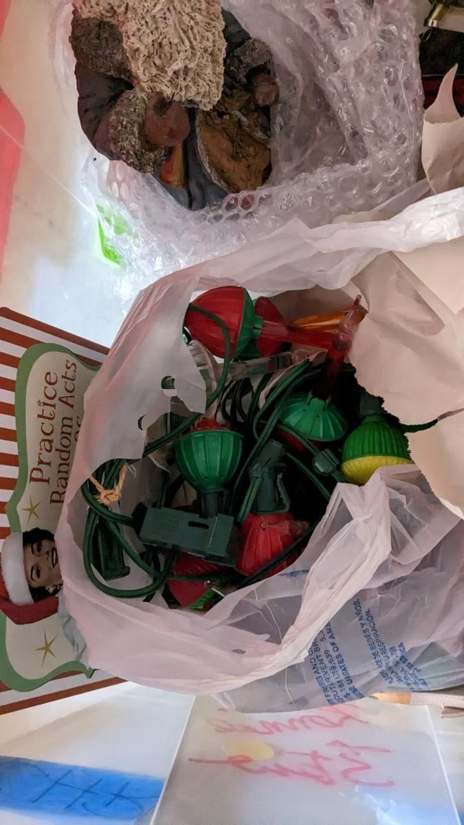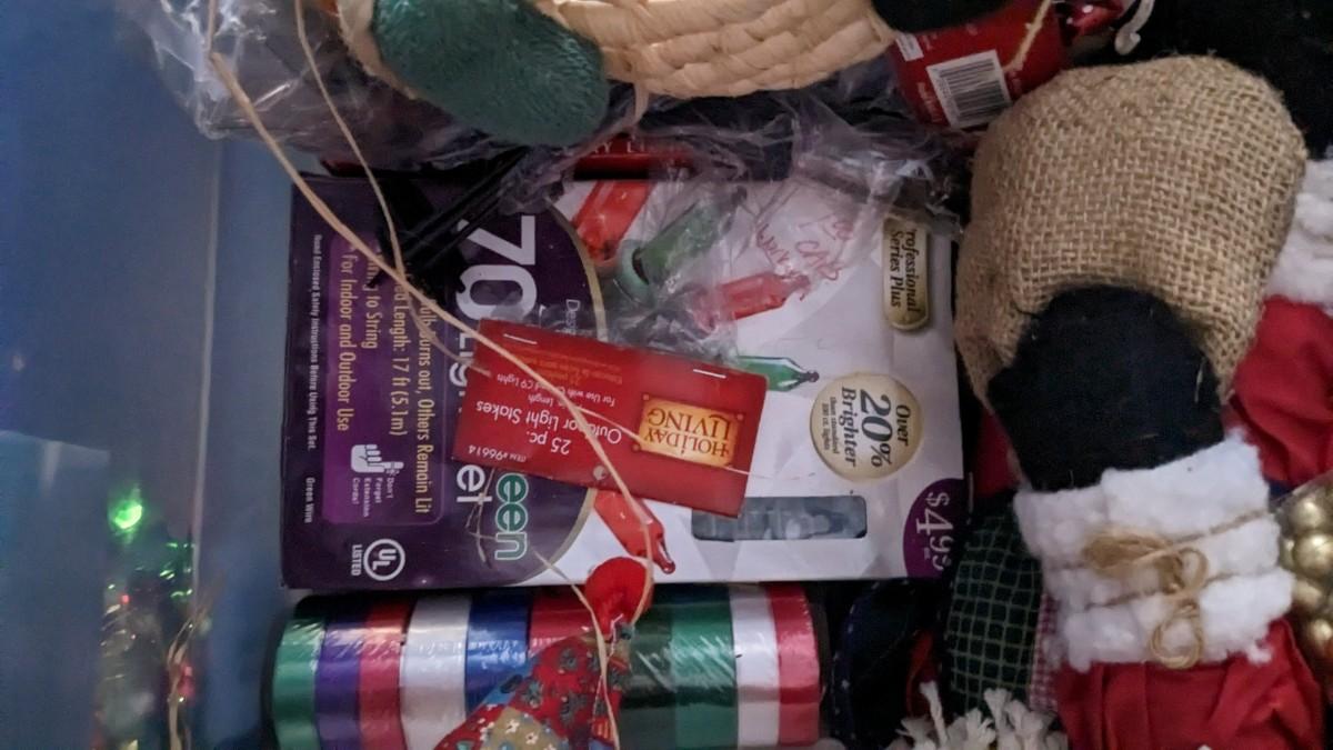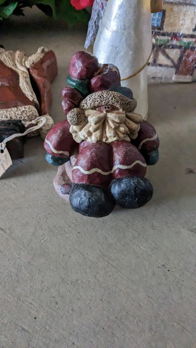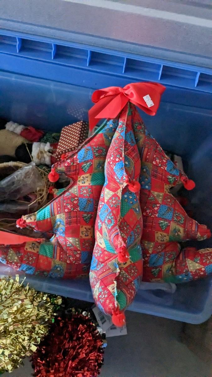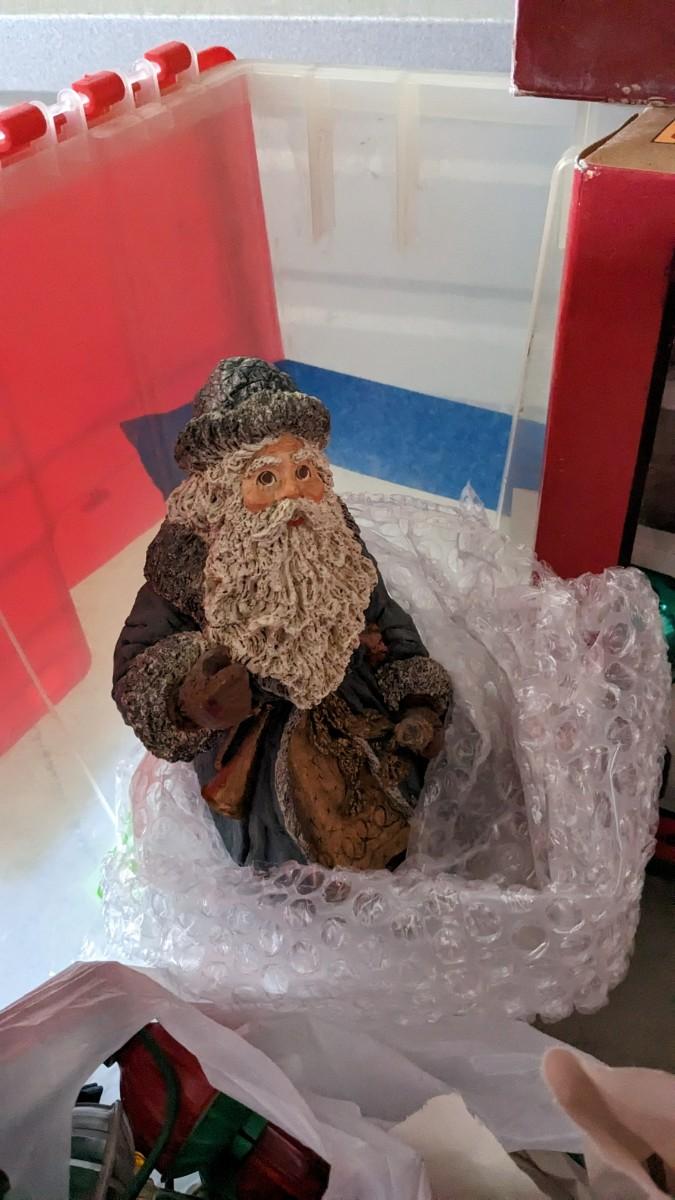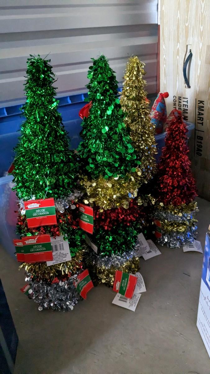 A great assortment of very decade christmas items. Includes June McKenna numbered santa, faux florals, mated christmas tree candle holders,tinsel trees, snowy village kitchen accessories, snowflake dessert bowls, crafting items, 4 ft christmas tree in box never opened, Jingle Bell Rock Santa, heritage mint ice village christmas tree, and more! No shipping 2616