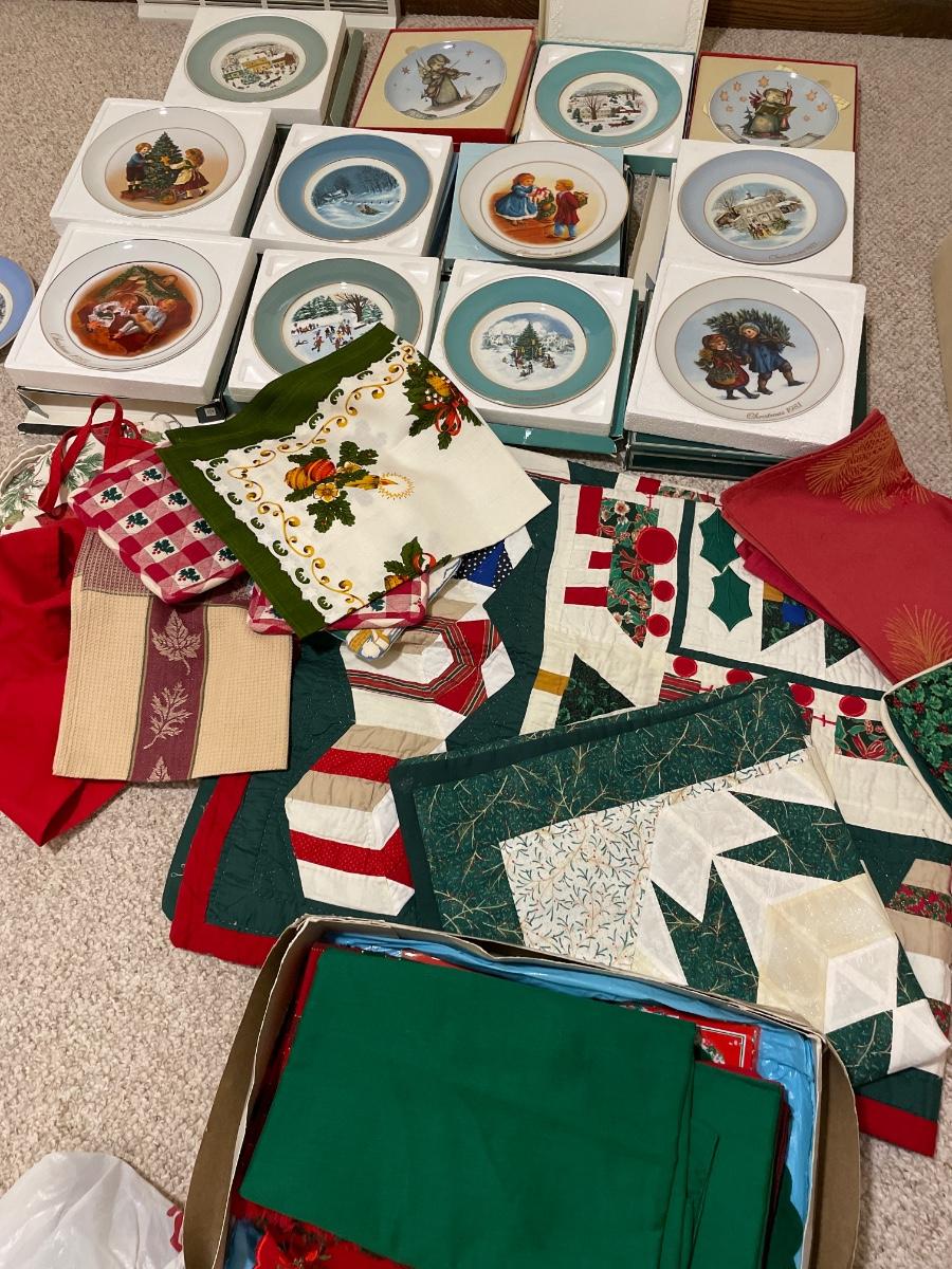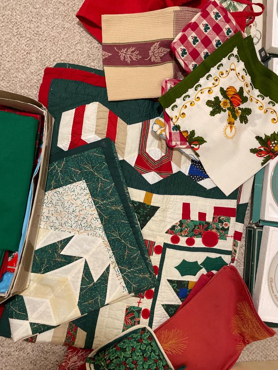 Includes Christmas quilt, table, clause, oven, mitts, placemats