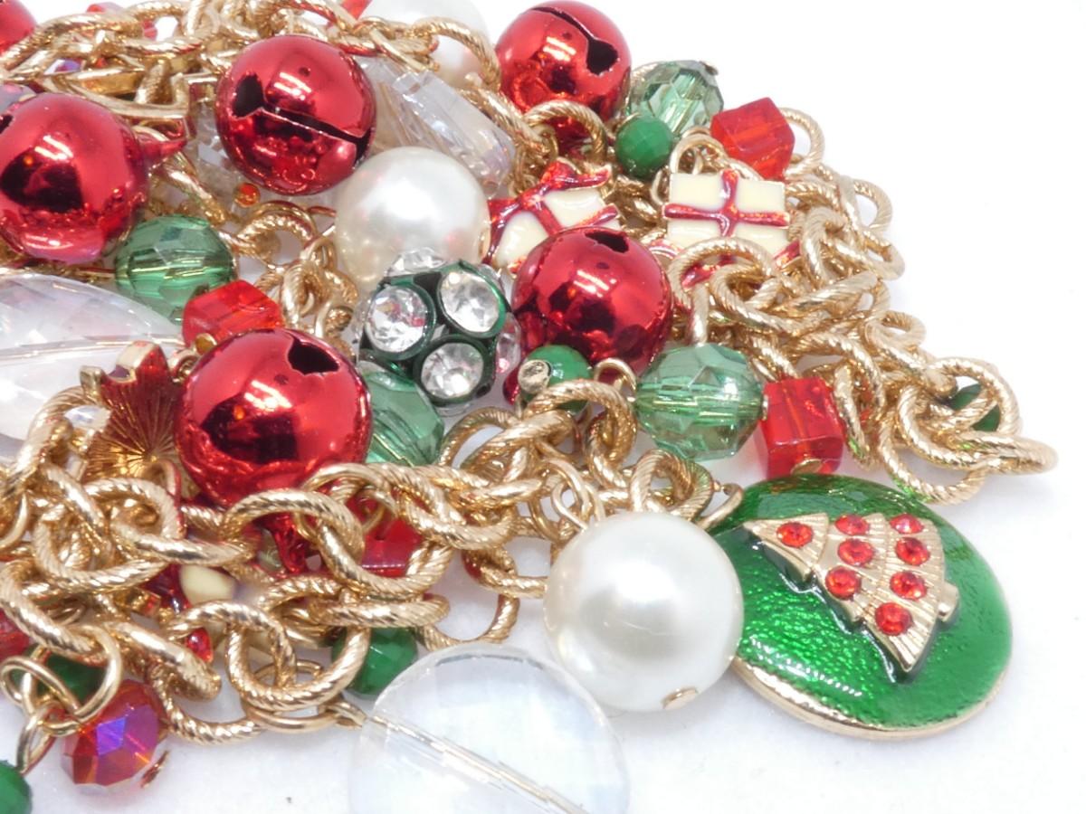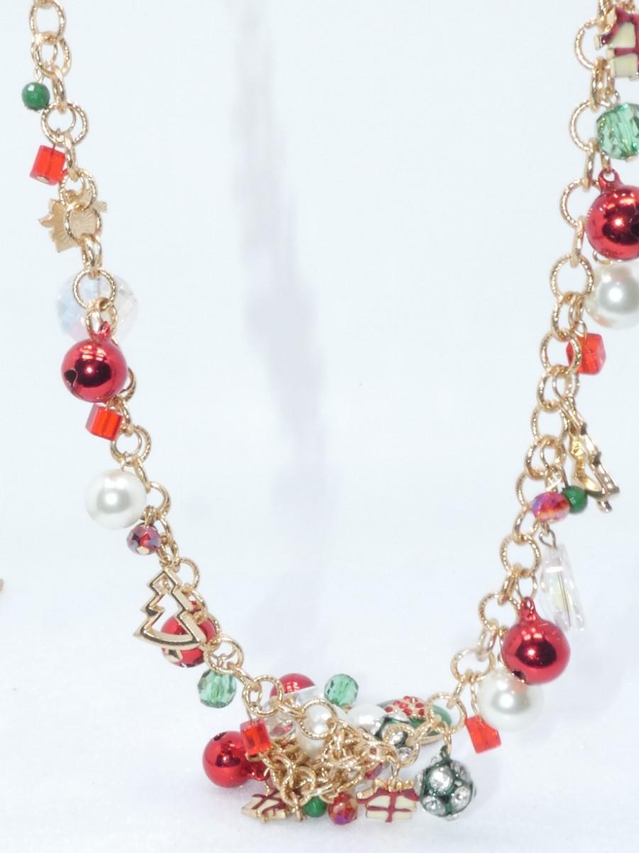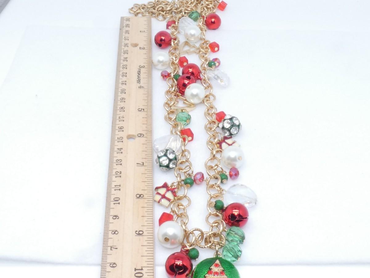 Christmas Baubles & Beads Gold Tone Holiday Necklace