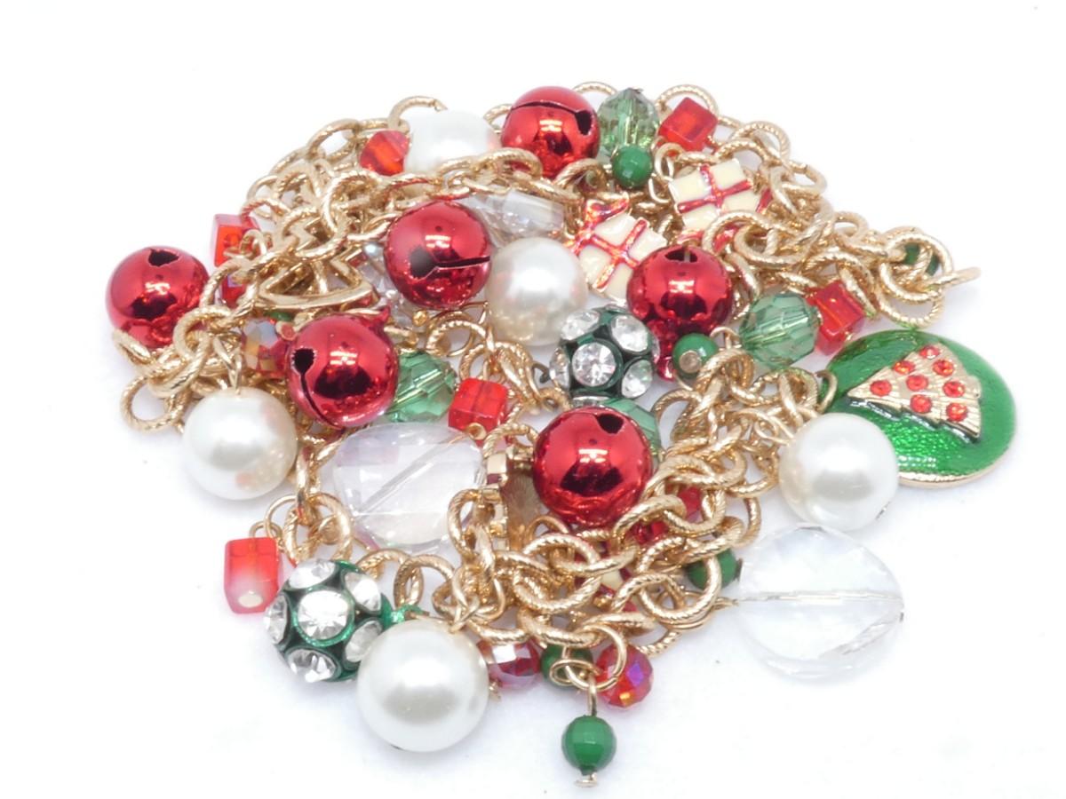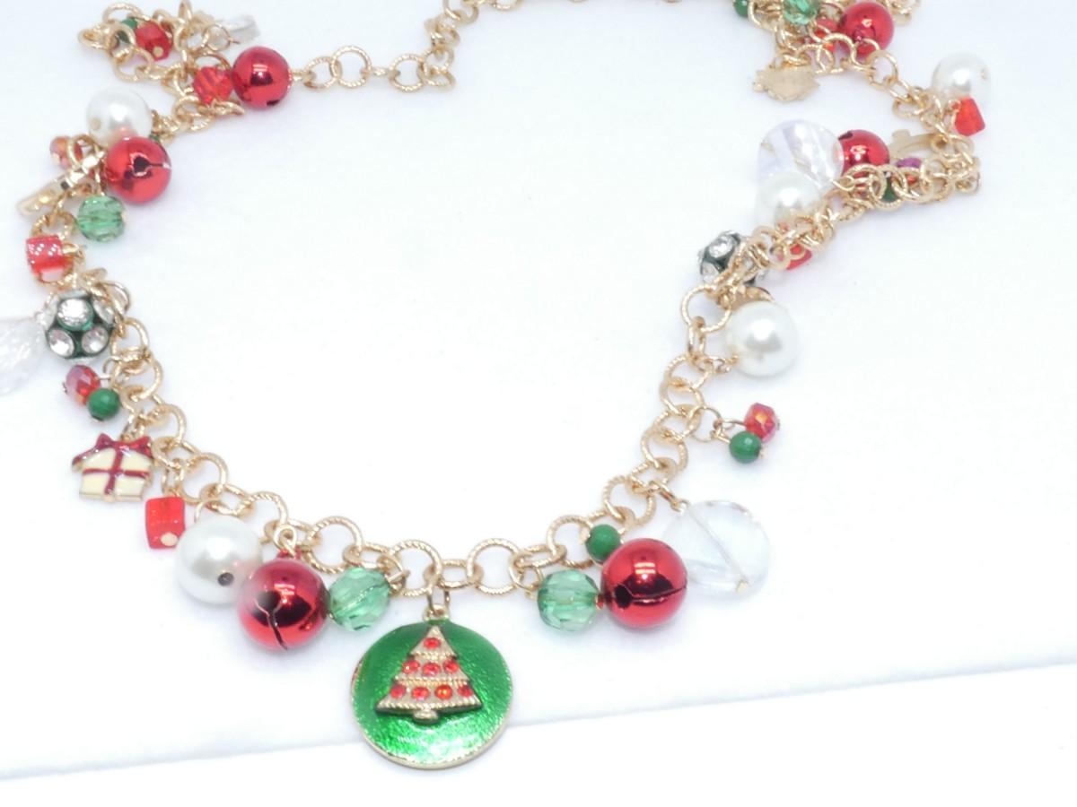 Christmas Baubles & Beads Gold Tone Holiday Necklace