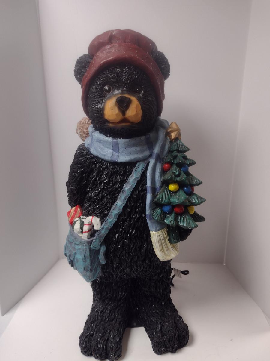Christmas Bear Holiday Decor- Approx 28 1/2" Tall. Item is made of composite. Electric plug is missing, so item is untested.