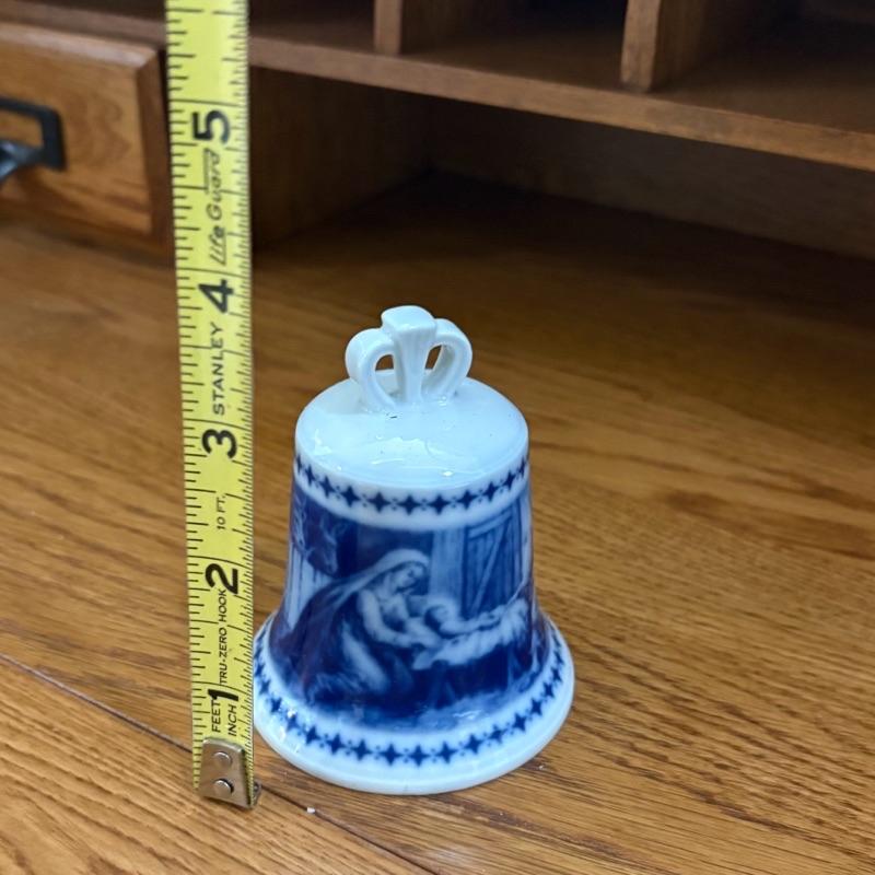 Made of porcelain, the bell is approximately 3 inches in height and weighs about 4.5 oz.