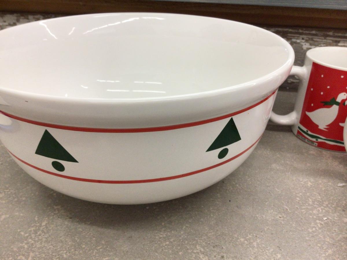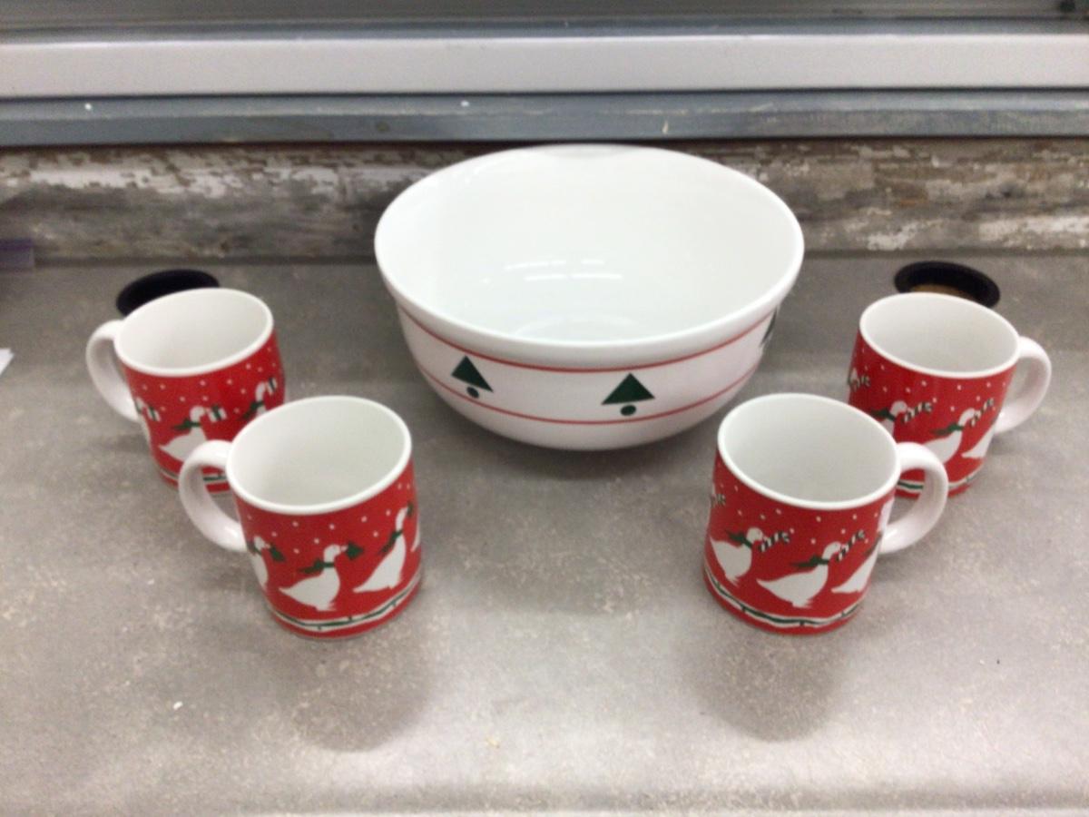 You get nice Christmas bowl with Christmas tree made in Slovenia. You also get six duck Dayton’s mugs.