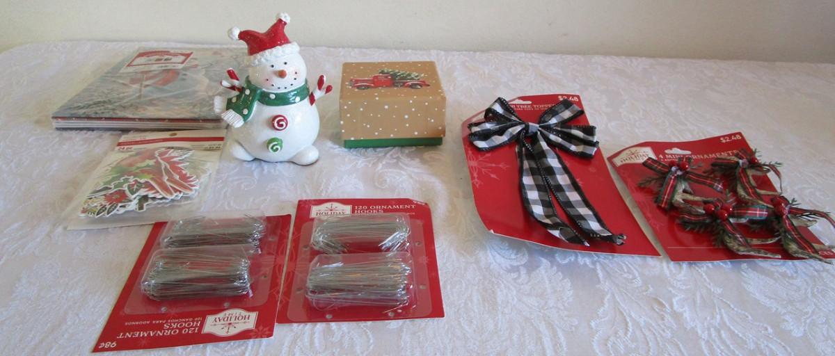 Christmas bows, snowman figurine, gift boxes ornament hooks
