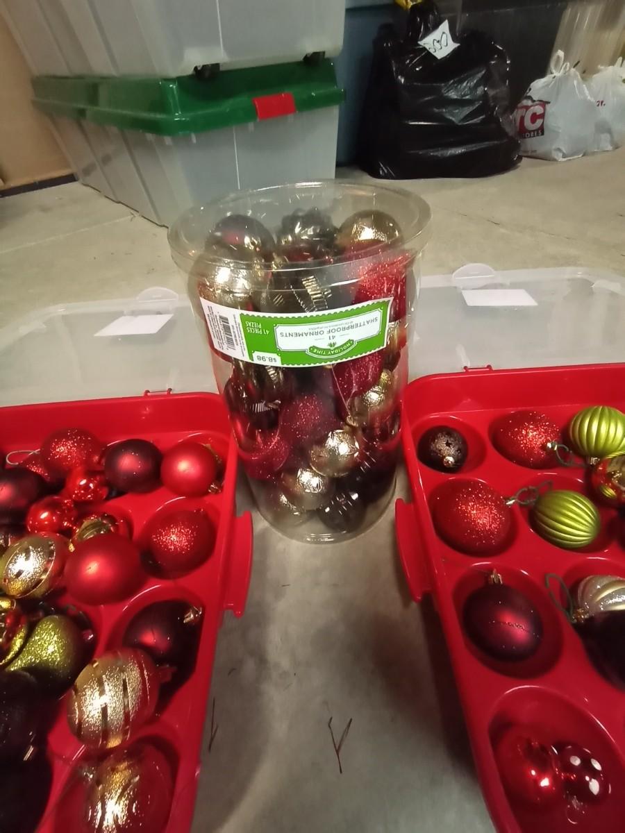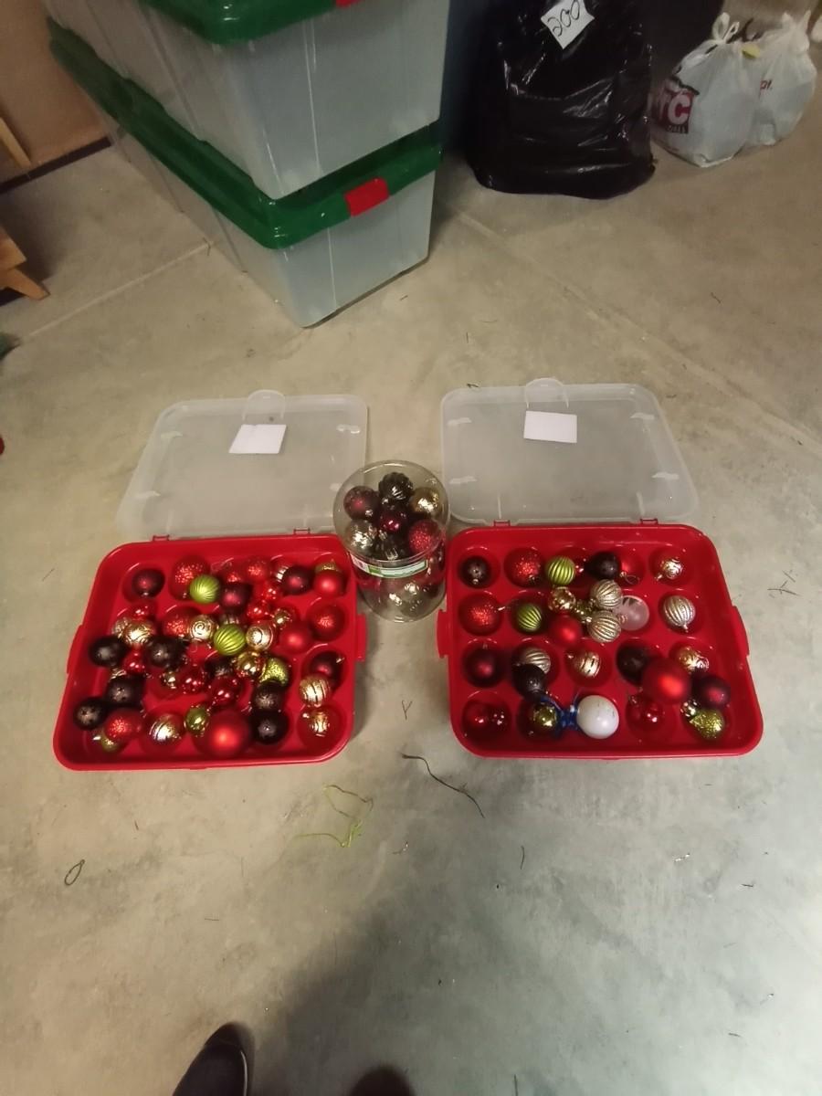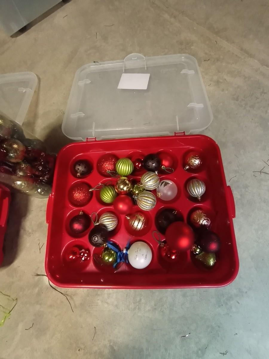 CHRISTMAS BULBS AND TWO BULB ORGANIZERS