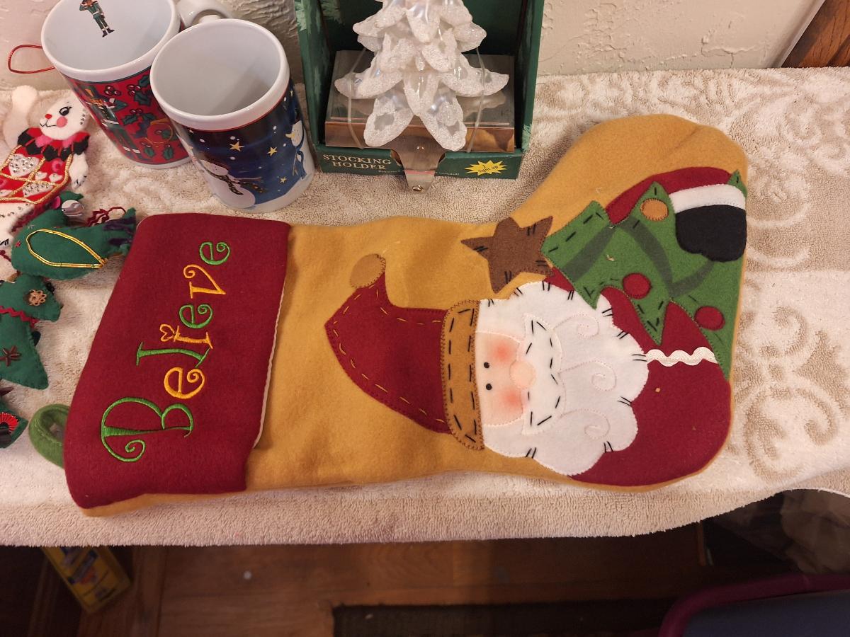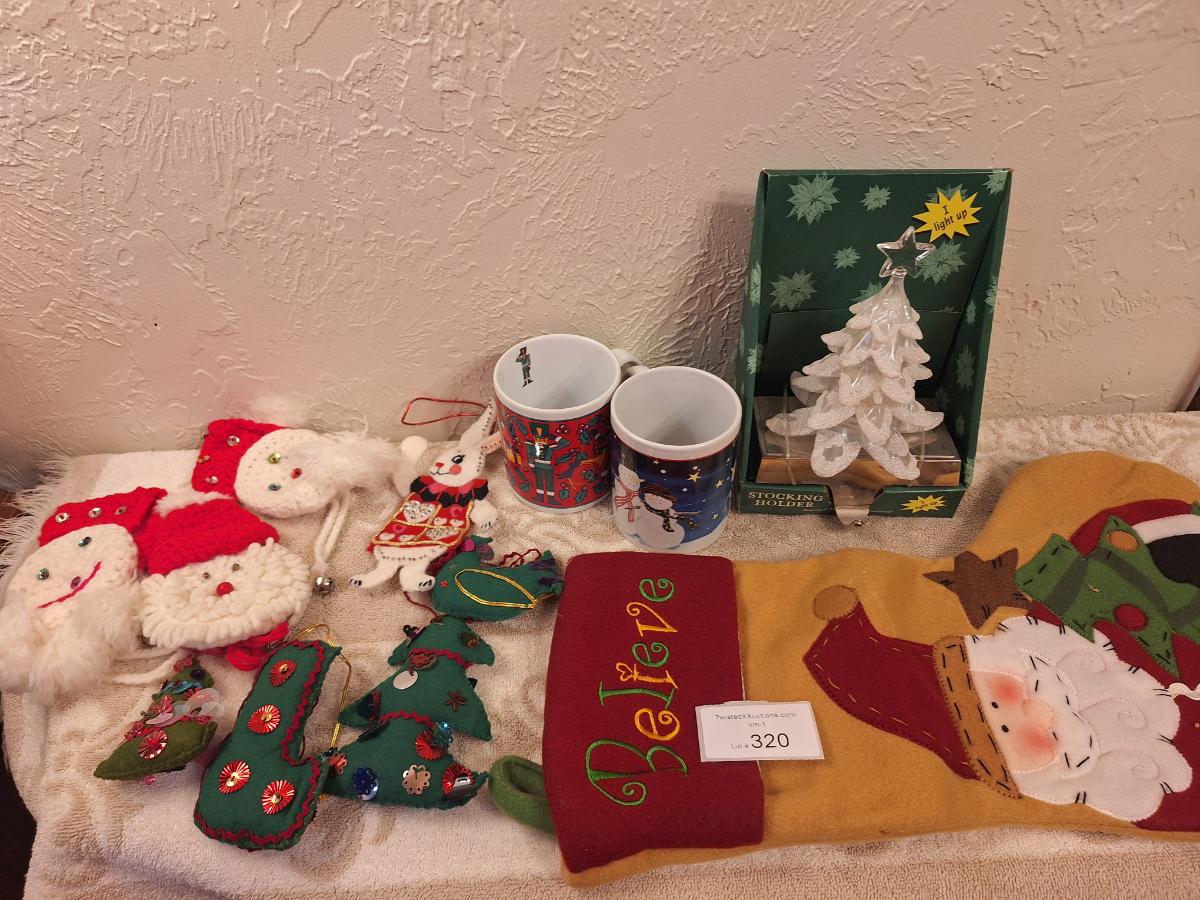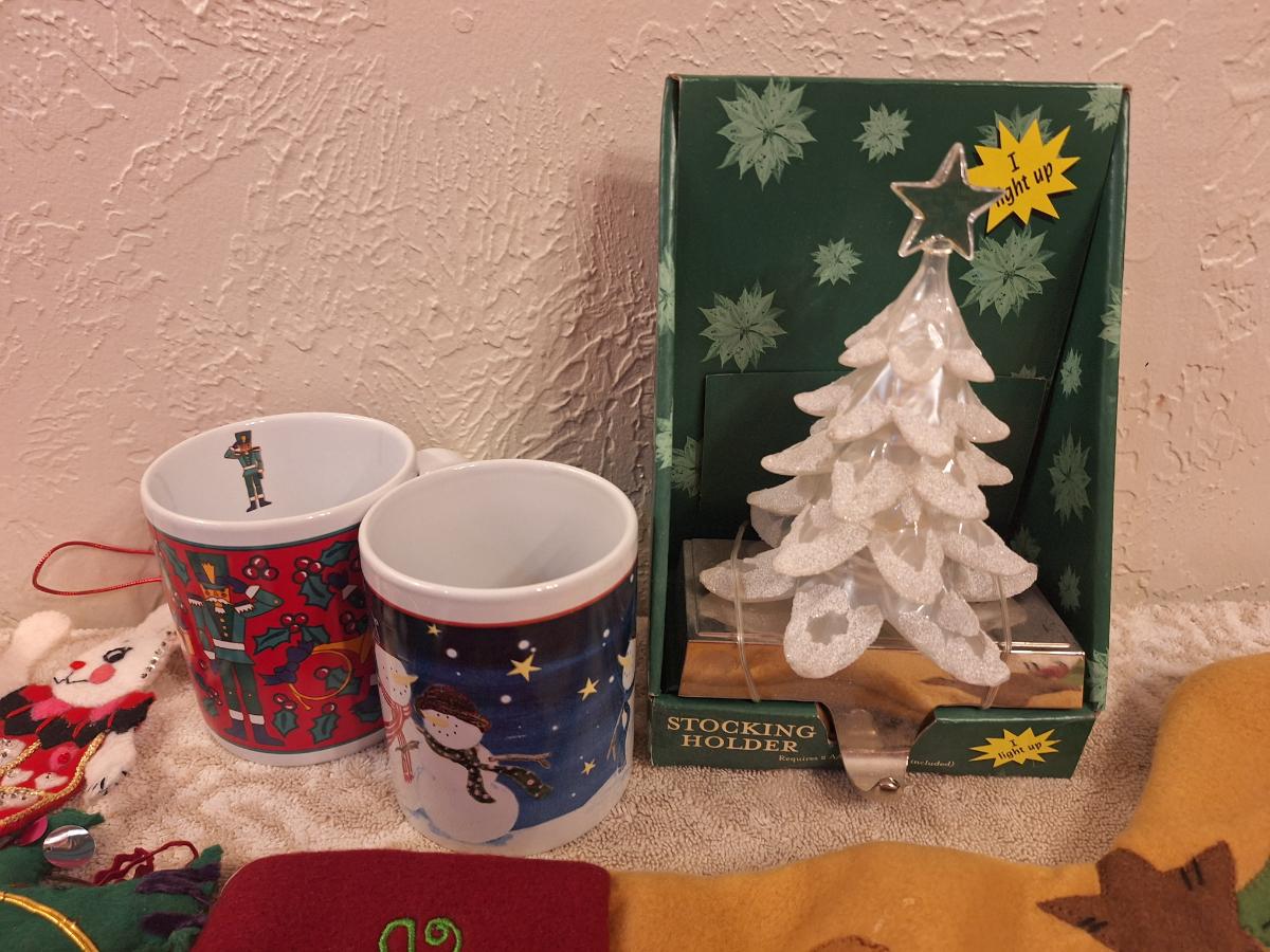 Christmas bundle, stocking, hook, door covers, coffee cups etc.