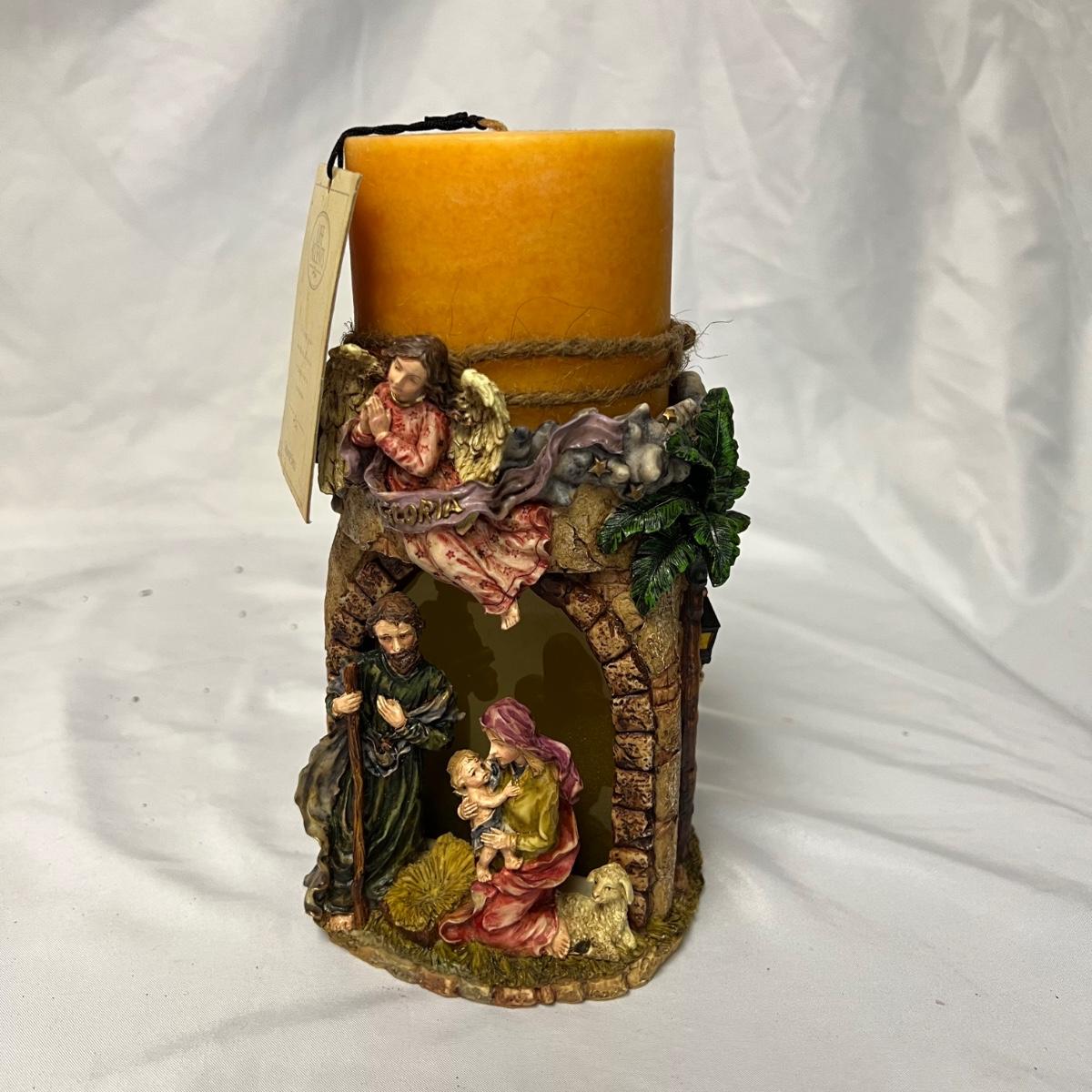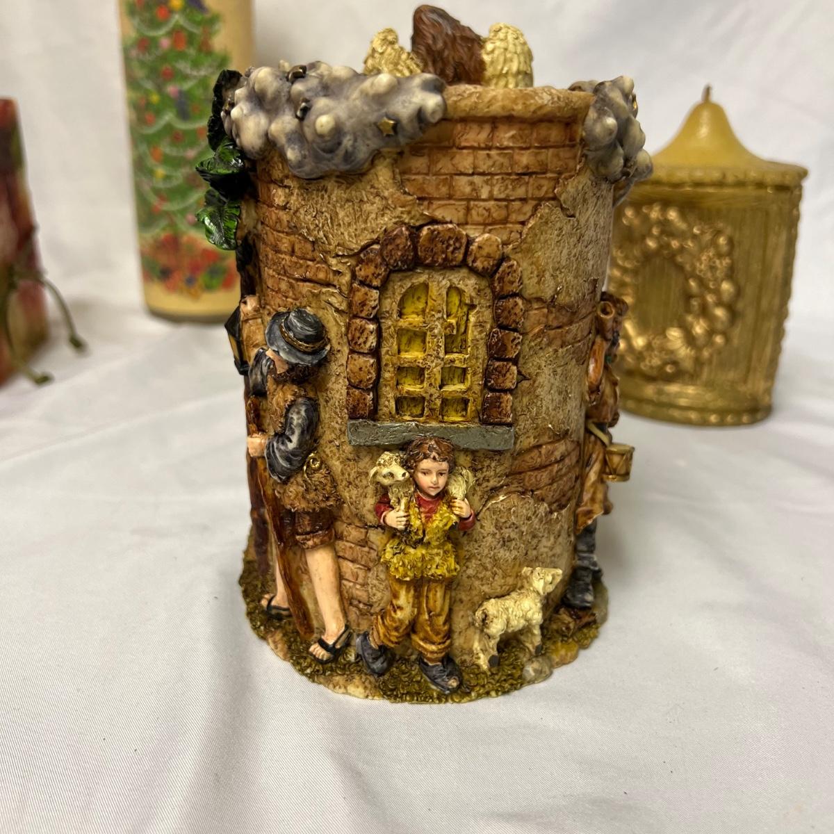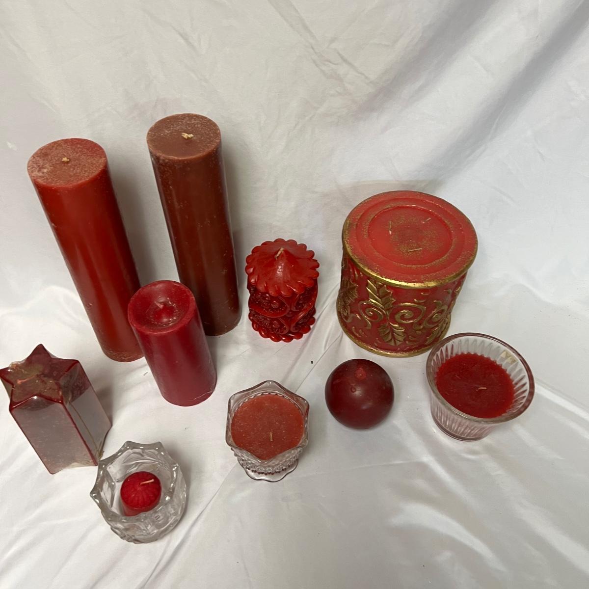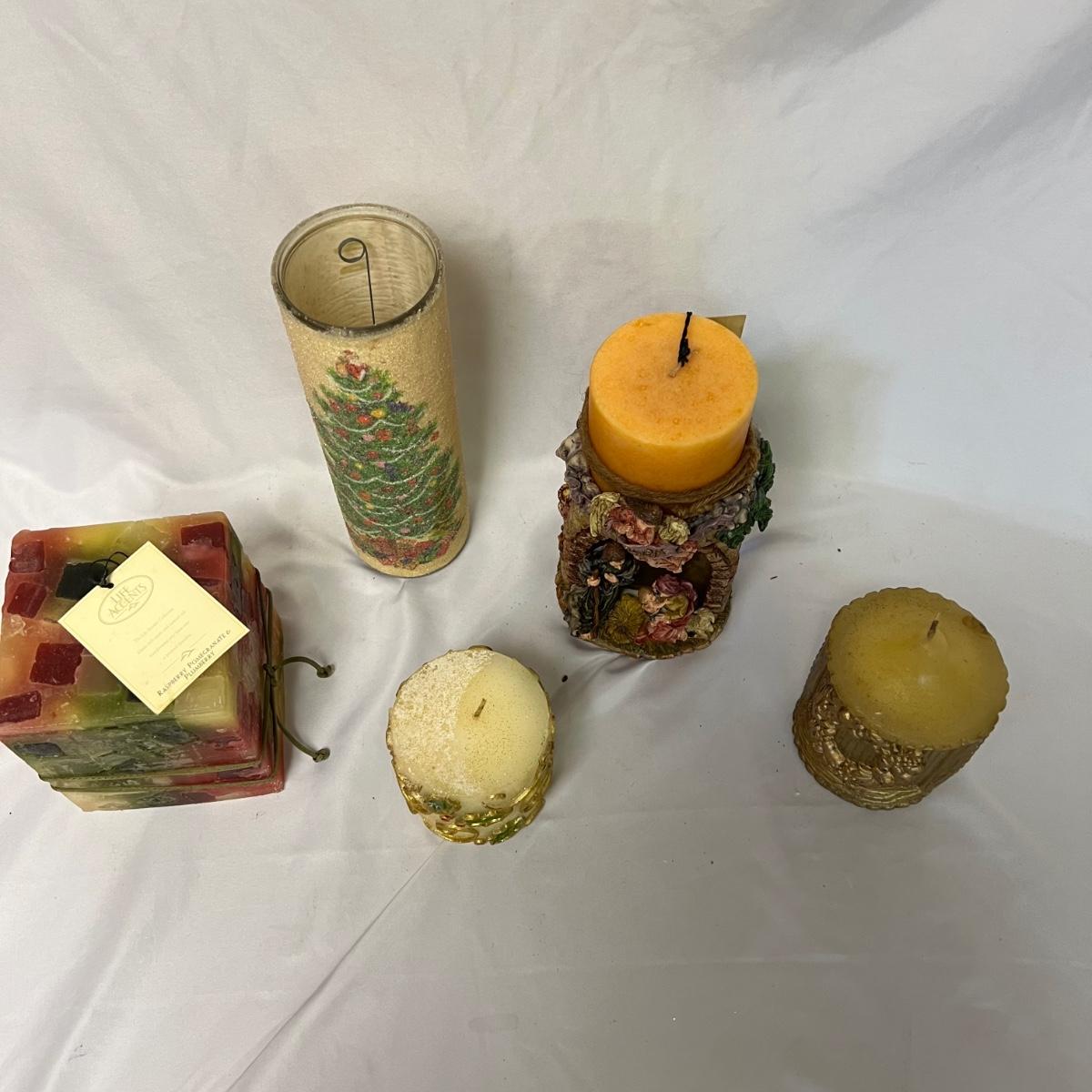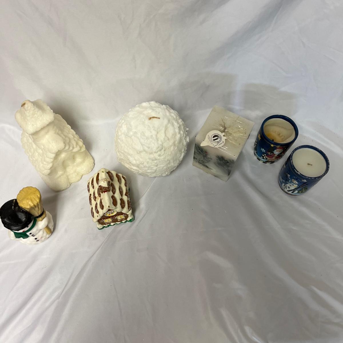 You’ll never have to buy Christmas candles again! (Twenty-seven in all!) Many of them never used and several of them lovely sculptures as well as solid red for table and mantel. Lot includes 66Qt. Holiday storage bin as shown. Santa candle measures approximately 16" tall.