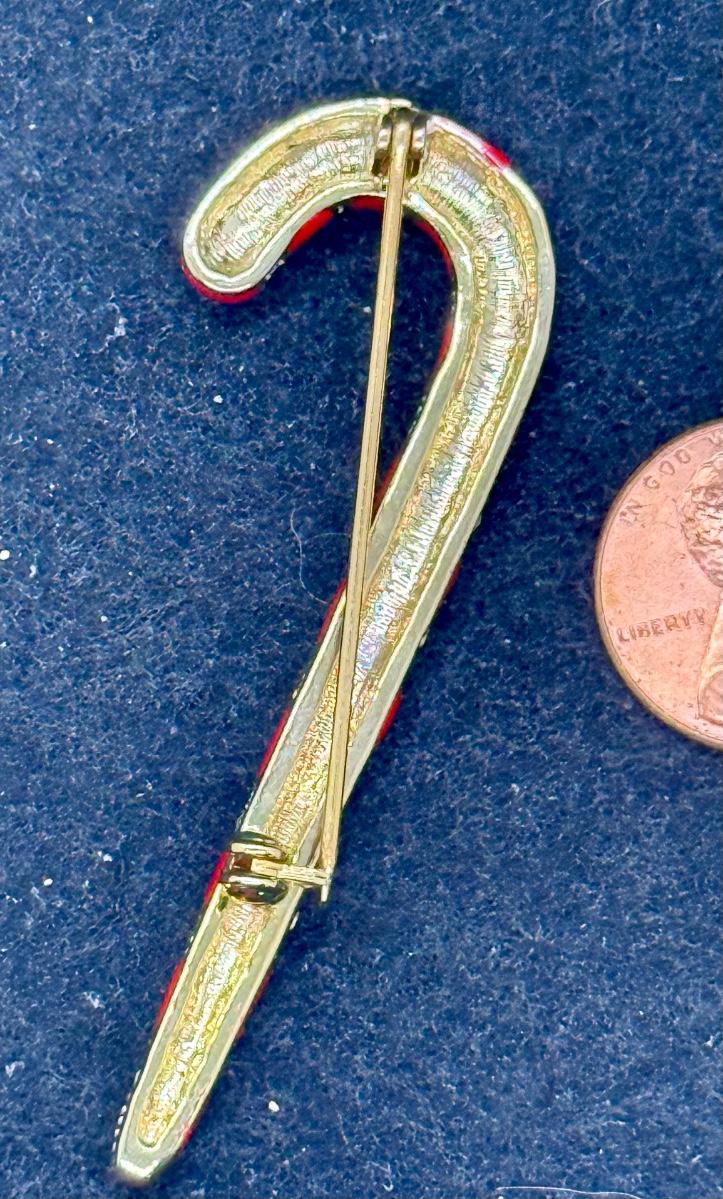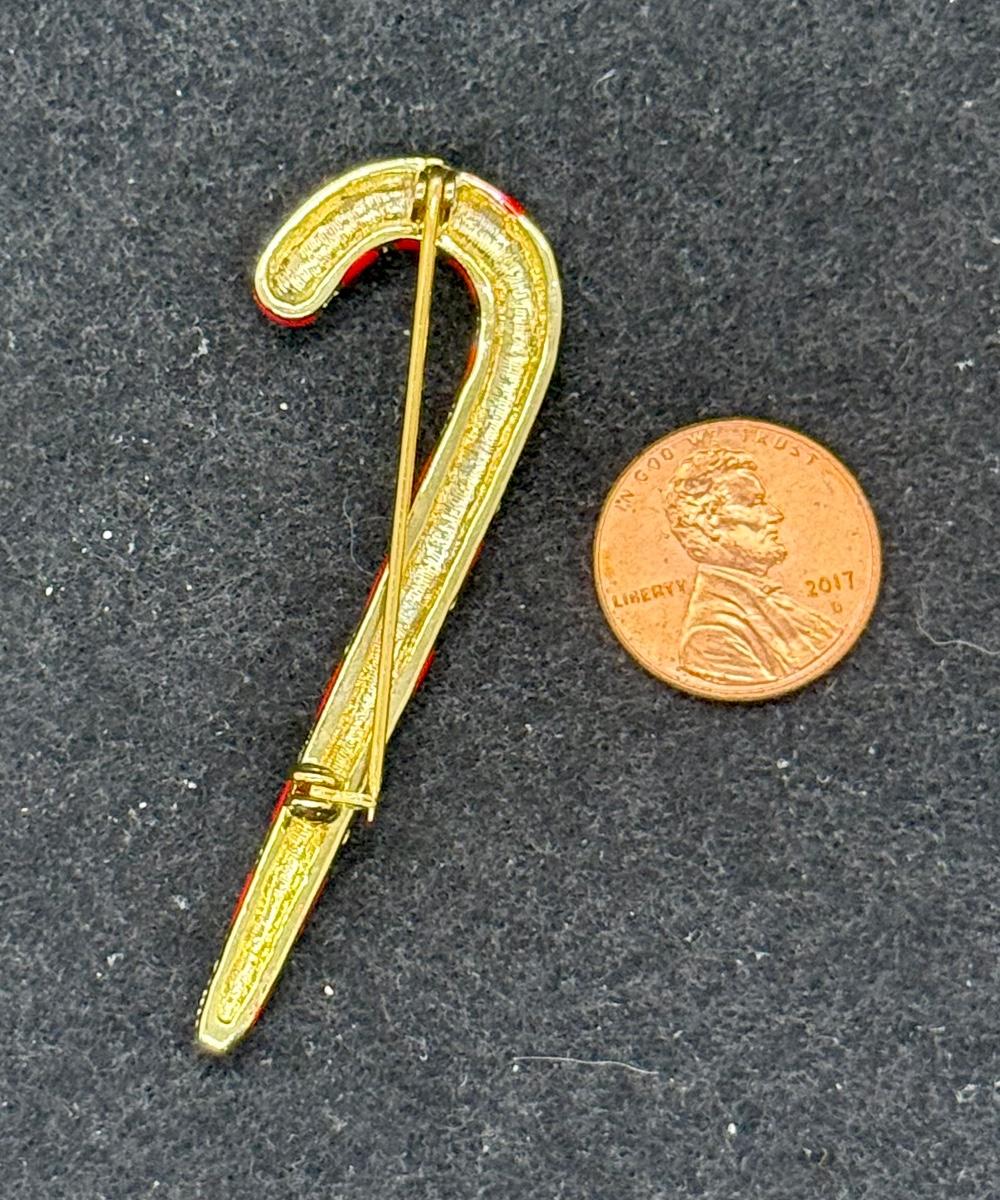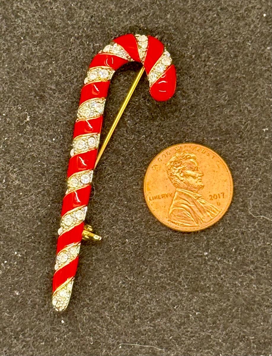 Brilliant red and white stripes, white stripes have faux diamonds, Good condition, approx. 2.25” long.