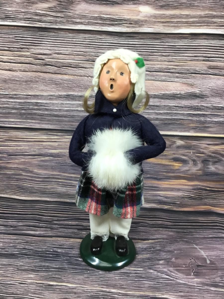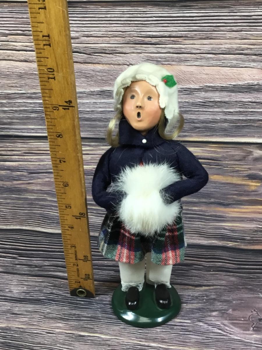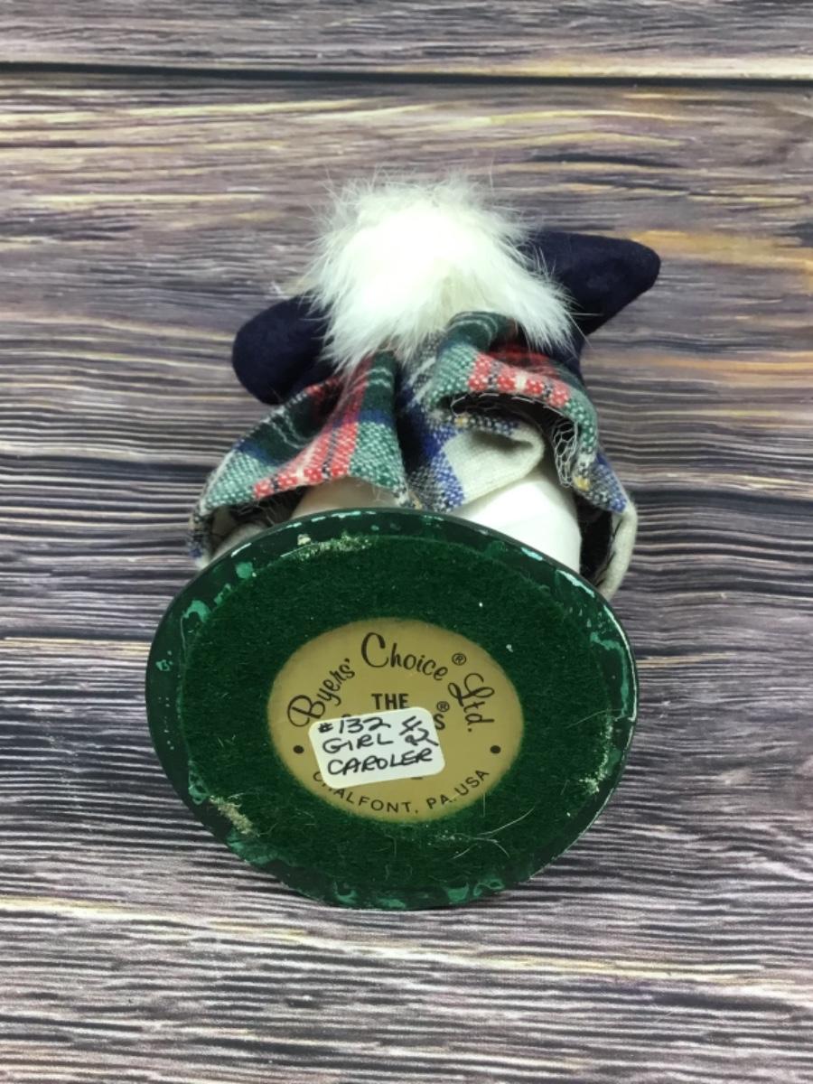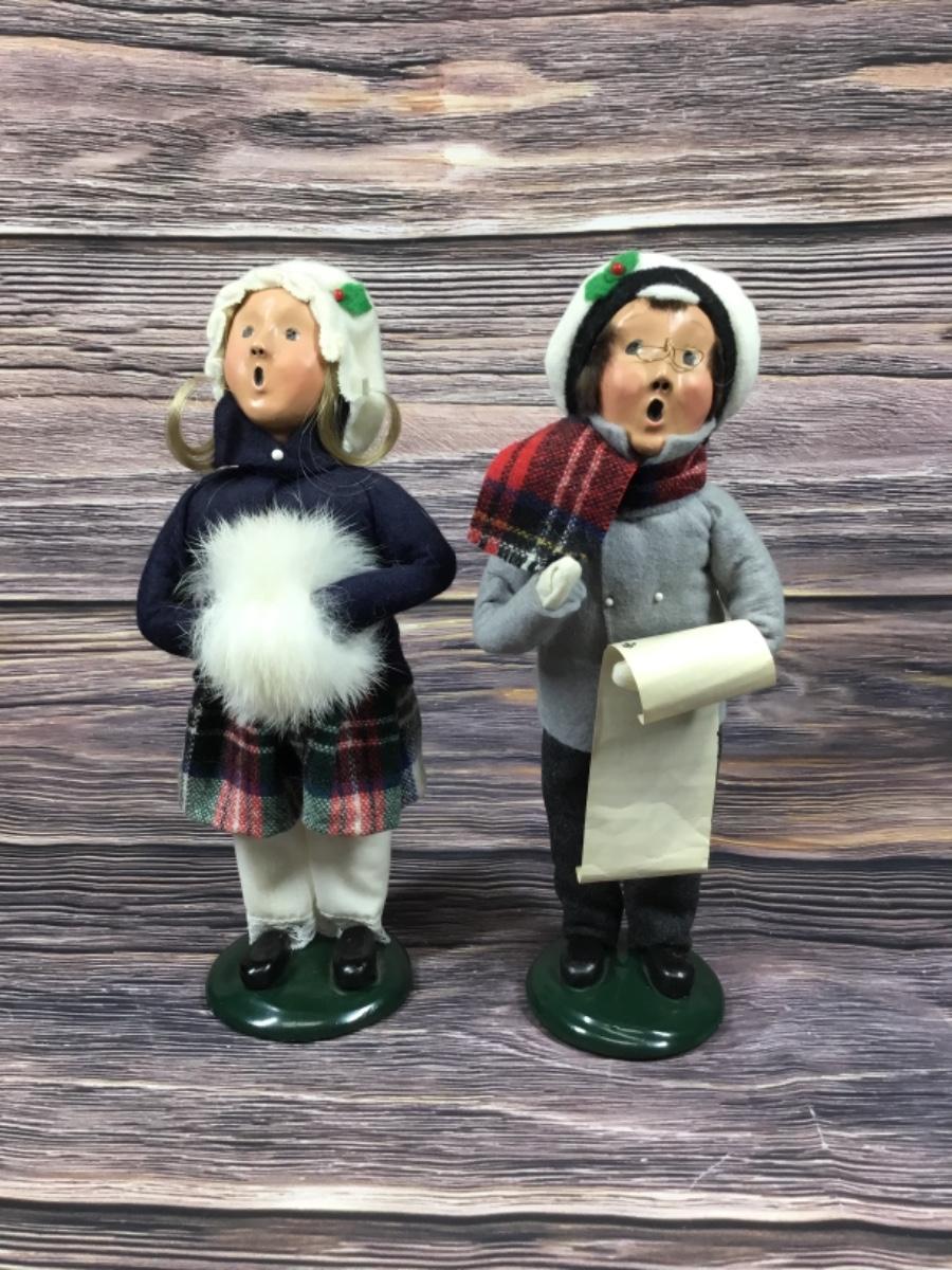 Both items are in decent condition. The girl caroler’s shoes are not attached to the figure. The scroll of music on the guy caroler is the wrong way. Both items are approximately 9” tall.